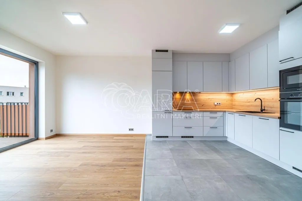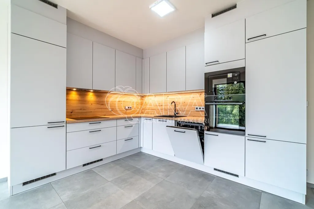 V bytě je k dispozici plně vybavená prostorná kuchyňská linka s vestavěnou chladničkou s mrazákem, indukční varnou deskou, digestoří, pečící a mikrovlnnou troubou a myčkou nádobí.
