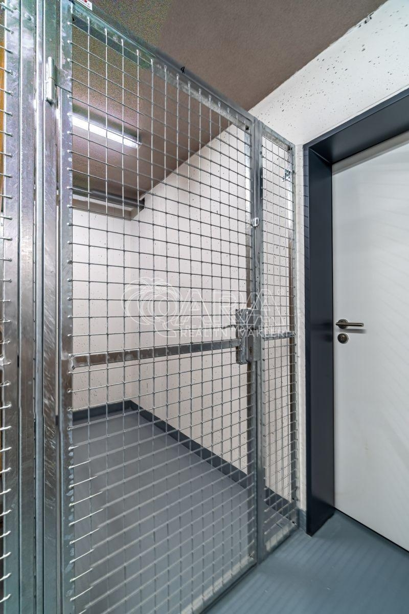 K bytu náleží venkovní parkovací stání, sklepní kóje v suterénu domu a k dispozici je ve společných prostorách také kolárna s kočárkárnou a sušárna.