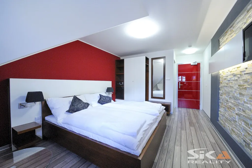 Klíčové parametry nemovitosti: Lokalita: historické centrum města Louny – nejprestižnější adresa ve městě. Dispozice: 1 podzemní podlaží, 4 nadzemní podlaží a využité podkroví. Kapacita: 10 plně vybavených pokojů (6 dvoulůžkových, 4 jednolůžkové). Vybavení: Osobní výtah, vybavená kuchyně, lobby bar, zastřešené atrium. Navíc: Venkovní terasa postavená přímo na městských hradbách se zastřešeným pódiem. Bonus: Nemovitost je nabízena včetně inventáře a vybavení.