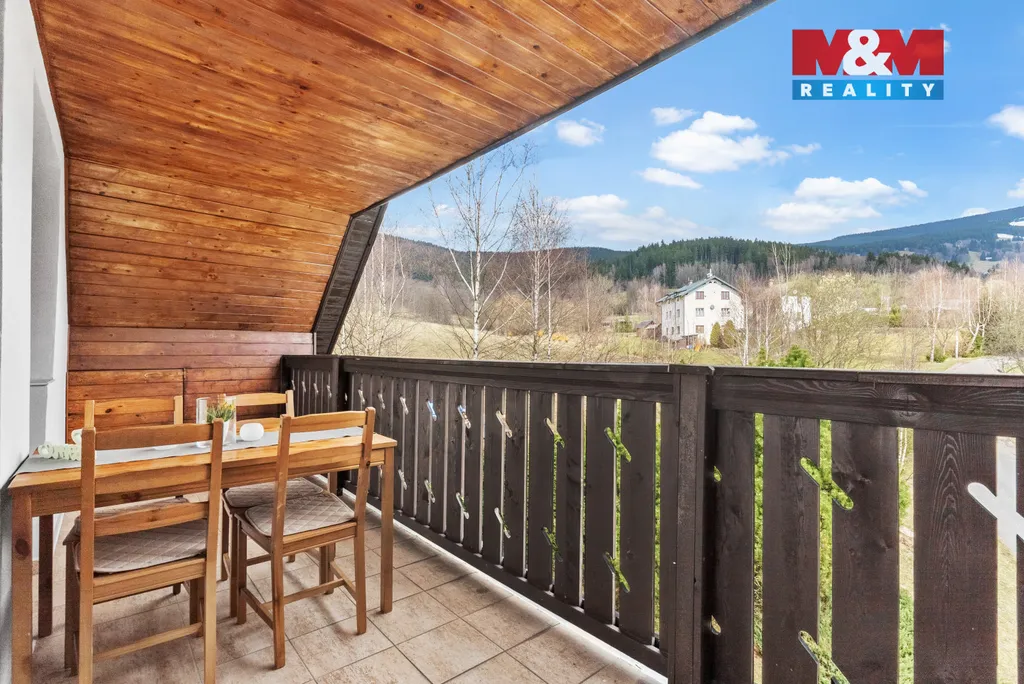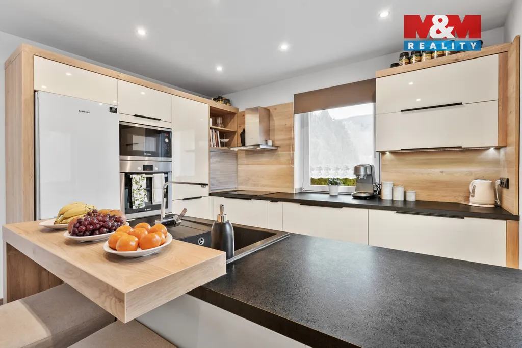 Hledáte dům, který má prostor, soukromí a výhledy, které Vás nepřestanou bavit? Tenhle Vás překvapí. Srdcem tohoto domu je velkorysý obývací pokoj s krbem a výhledem, který Vás neomrzí, dále se zde nachází jedna z ložnic. Kuchyně na míru? Je tu! Krytý balkon na ranní kávu? Samozřejmě. Ale to nejlepší na Vás čeká v patře – probouzet se můžete s výhledem přímo na Lysou horu, nebo si užívat výhledy z kryté lodžie, na kterou je vstup ze 2 pokojů. Možná zde využijete i třetí pokoj. Nacházíme se na samém okraji obce, na pozemku, za kterým už je jen klid. Prostorný dům o dispozici 5+2kk v Horní Rokytnici disponuje podlahovou plochou 212 m2 a stojí na pozemku 414 m2.