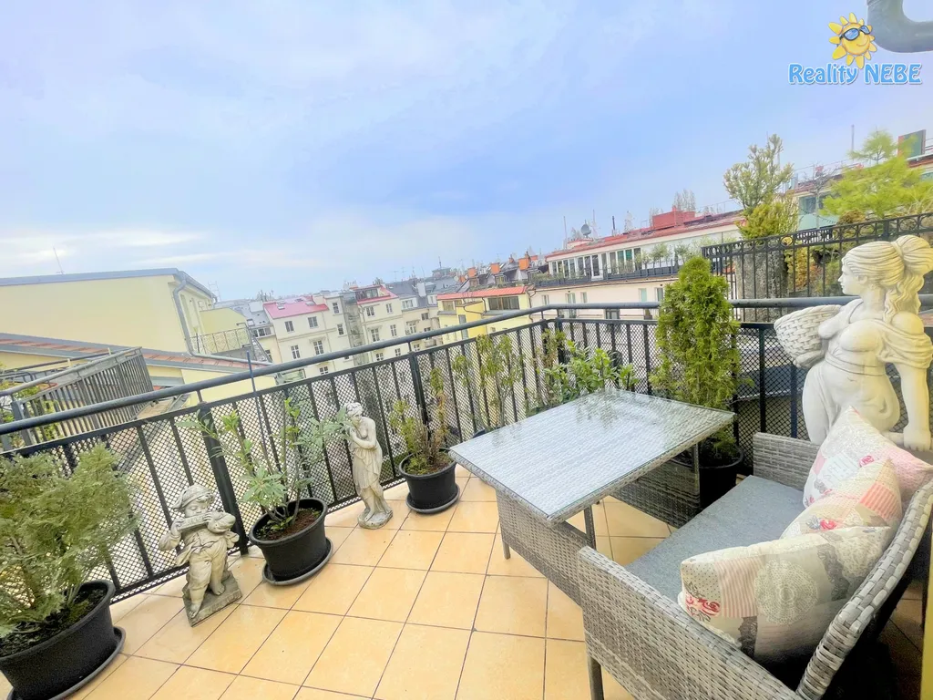 Pronájem luxusního mezonetového bytu 3kk 93m2 s terasou 17m2 v ulici Zborovská Praha 5 Smíchov s výhledem na Prahu. Byt se nachází v 5.patře historického cihlového domu s výtahem. Byt je po rekonstrukci a kompletně zařízen retro stylem. Bezpečnostní dveře nás zavedou do vstupní chodby, kde jsou vestavné zrcadlové skříně, toaleta s umyvadlem. Dále se nám otevře obývací prostor sladěný v retro stylu, na který navazuje i kuchyňský kout s lednicí, mrazákem, sklokeramickou deskou, digestoří, mikrovlnkou, myčkou.