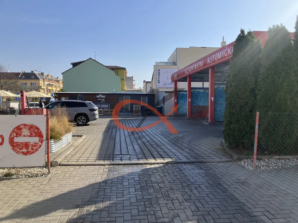 Část pozemku před objektem tvoří parkovací plochy, část tvoří venkovní posezení pro bar. Na části se nachází bezkontaktní automyčka (700 m²) se třemi boxy pro auta a restaurace (mobilní domek) s venkovním posezením.