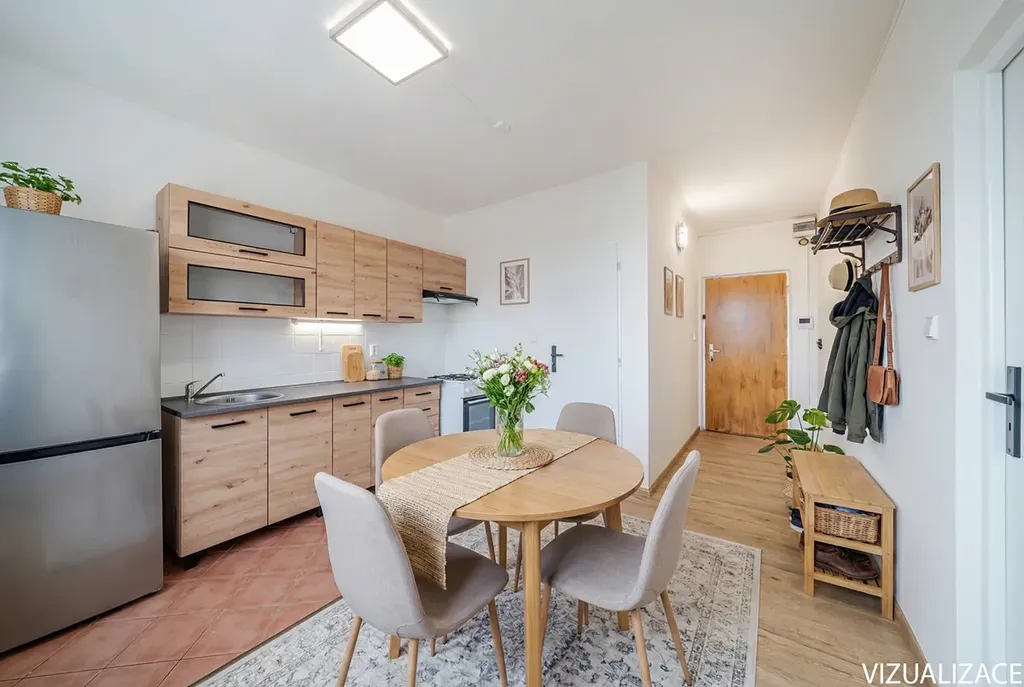 Velkou výhodou je oddělená spací zóna v obývacím pokoji, díky které byt působí prostorněji a nabízí komfort srovnatelný s dispozicí 2+kk. Byt je vhodný jak pro vlastní bydlení, tak jako investice k pronájmu. K bytu náleží sklep o velikosti 1,2m2.