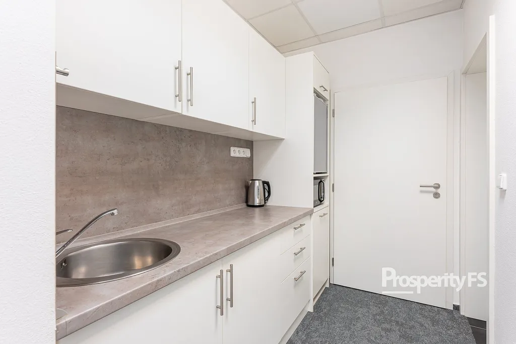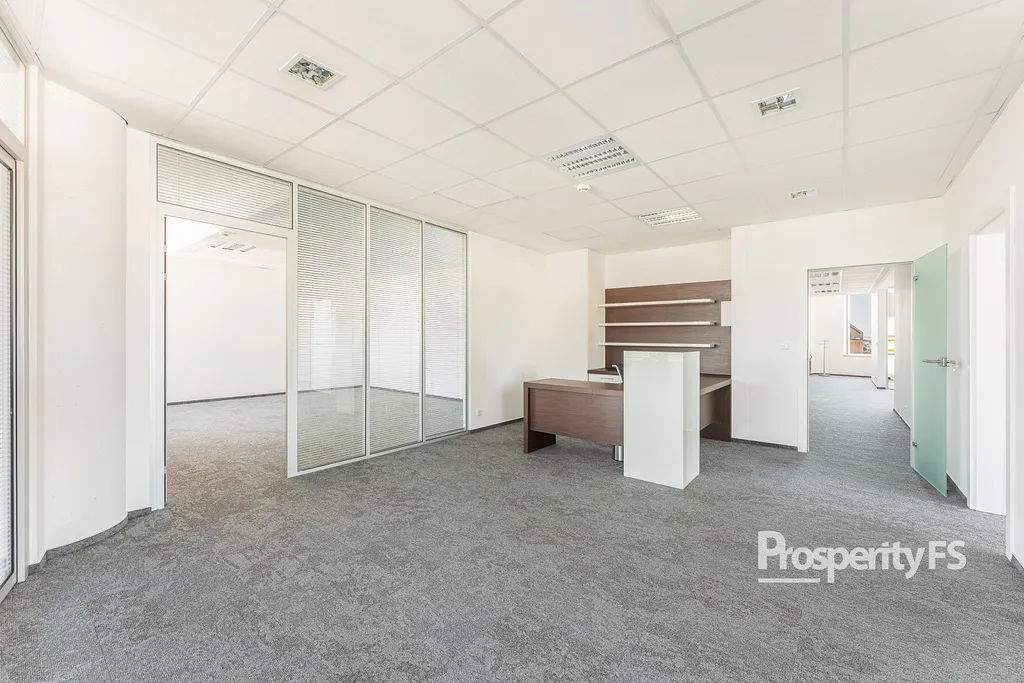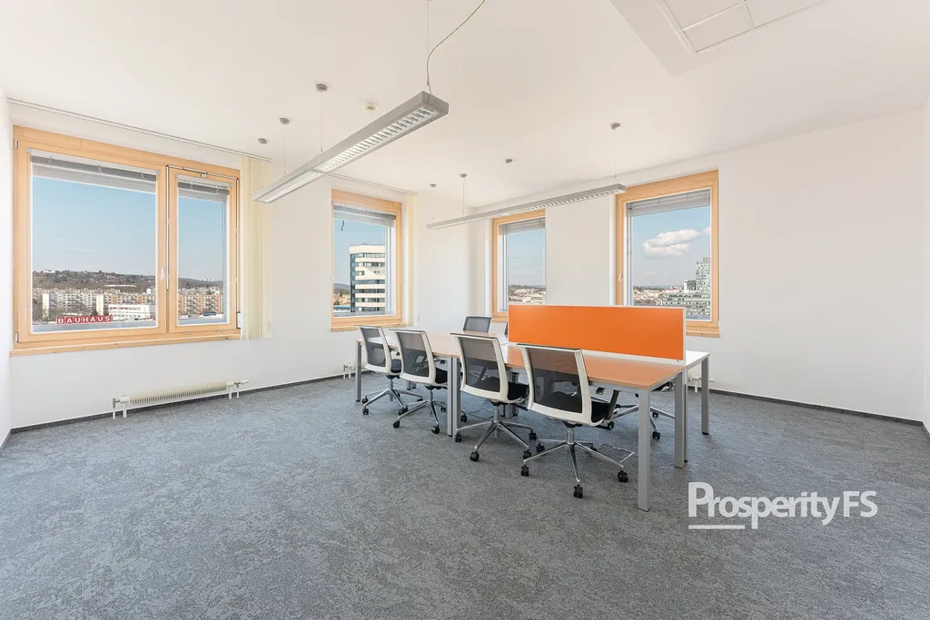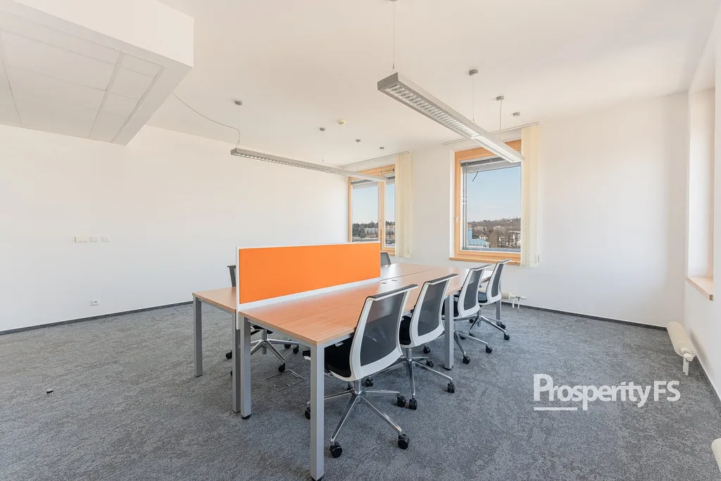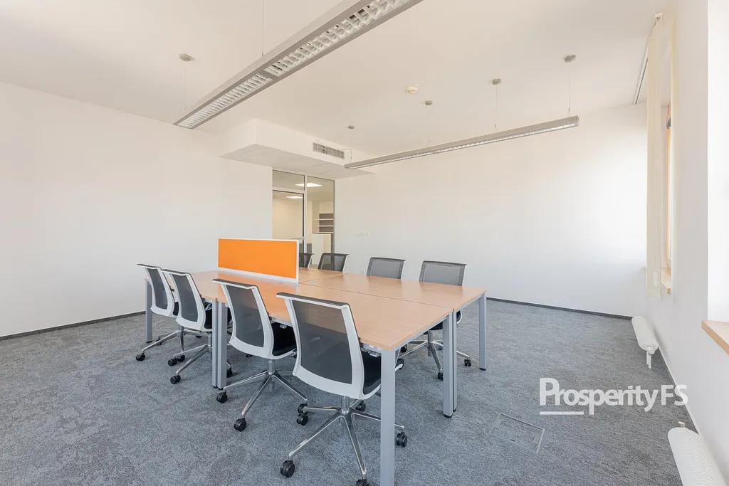 Každá kancelář je plně klimatizovaná, vybavená žaluziemi a vstup je zajištěn přes čipovou kartu.