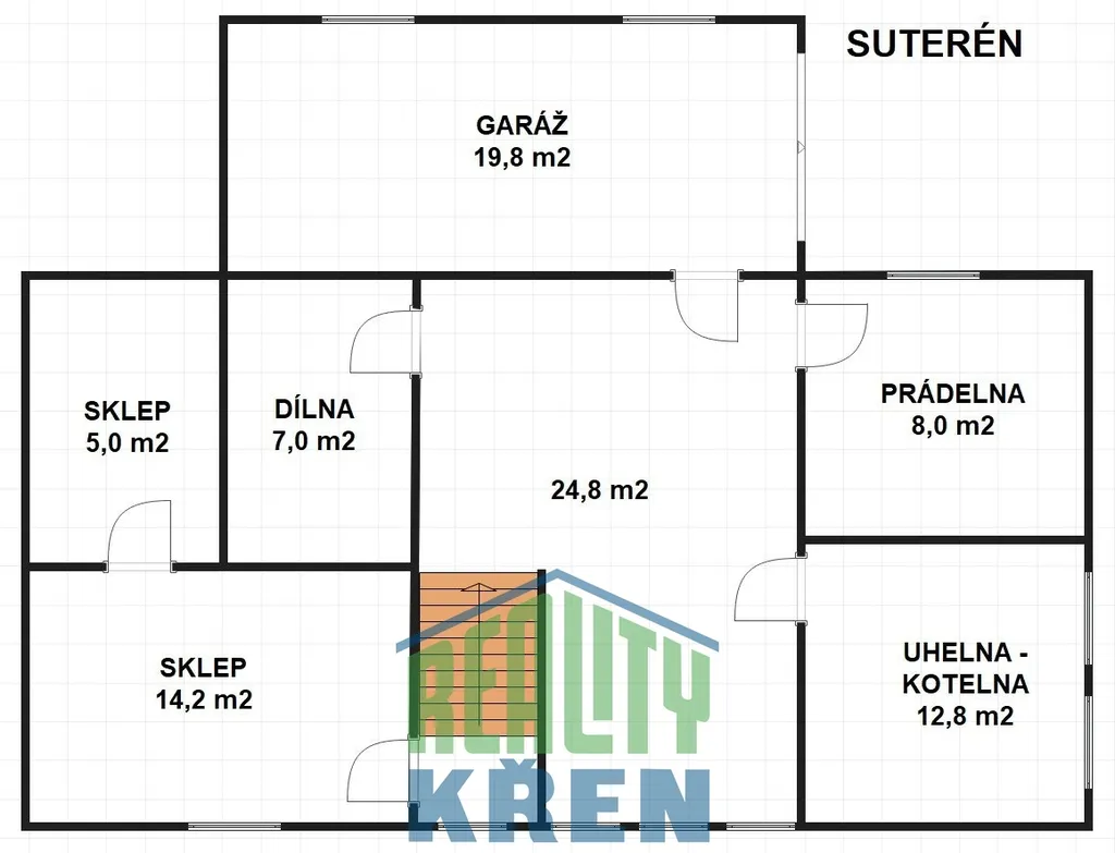 Suterén: dva sklepy, prádelna, kotelna, dílna, garáž;