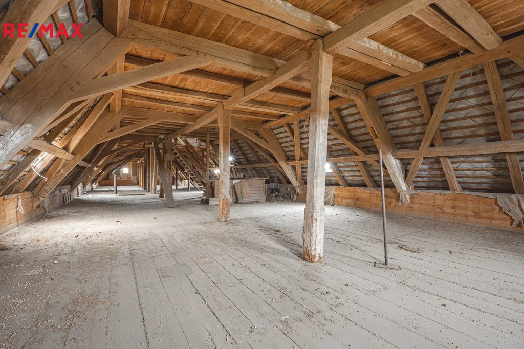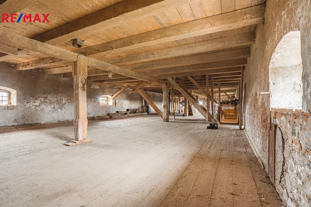Nabízíme k prodeji unikátní historickou sýpku – kulturní památku – nacházející se v obci Žerotice u Znojma, která představuje výjimečnou investiční příležitost s širokým spektrem budoucího využití. Hlavní objekt má zastavěnou plochu přibližně 440 m² a nabízí tři plnohodnotná podlaží a menší čtvrté podlaží, přičemž celkový potenciál podlahové plochy dosahuje až cca 1 200 m². Interiér si zachoval původní charakter s masivními dřevěnými konstrukcemi a otevřeným prostorem, který je ideální pro citlivou rekonstrukci dle vlastních představ.