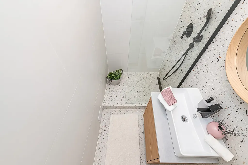 Dispozici bytu tvoří neprůchozí ložnice, velkorysý obývací pokoj spojený s kuchyní, prostorná koupelna se sprchovým koutem a samostatný záchod.