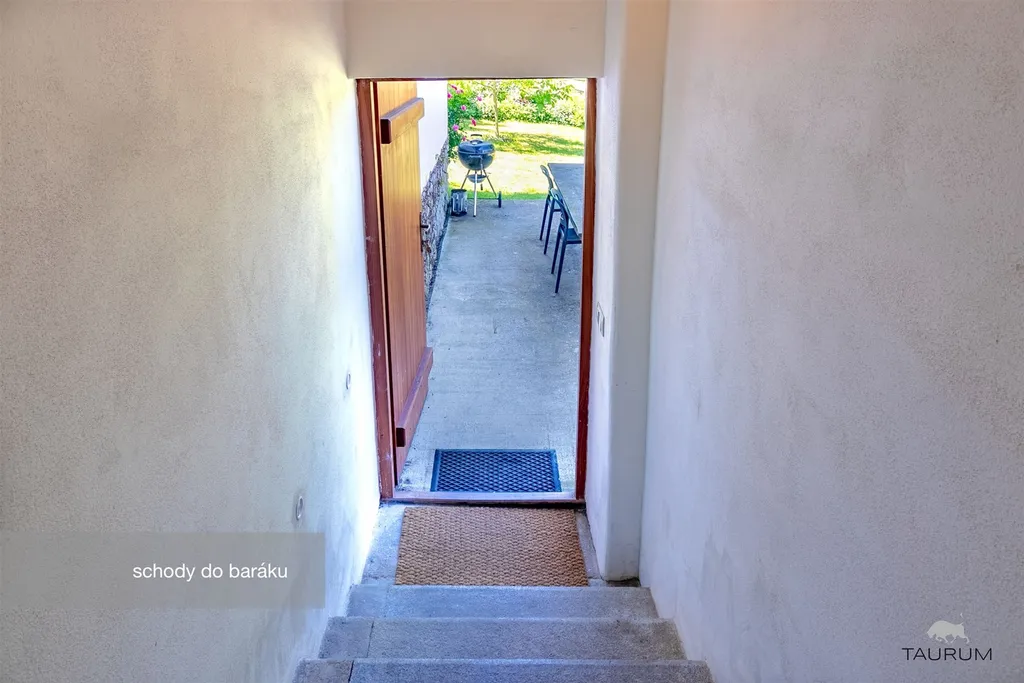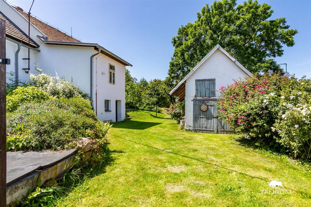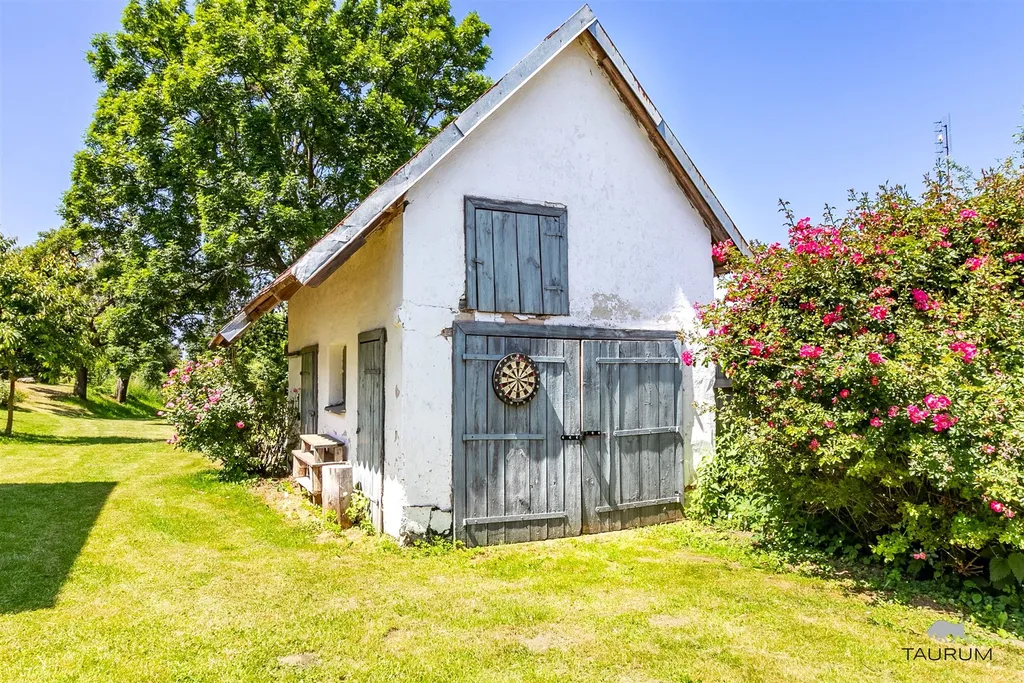 Na pozemku stojí samostatný domek sloužící jako garáž nebo sklad na zahradní techniku (cca 20 m2).