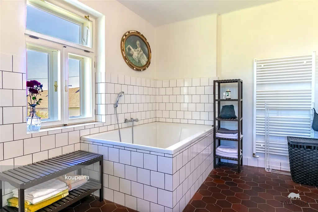 koupelna se sprchovým koutem a velkou 200l vanou (10 m2)