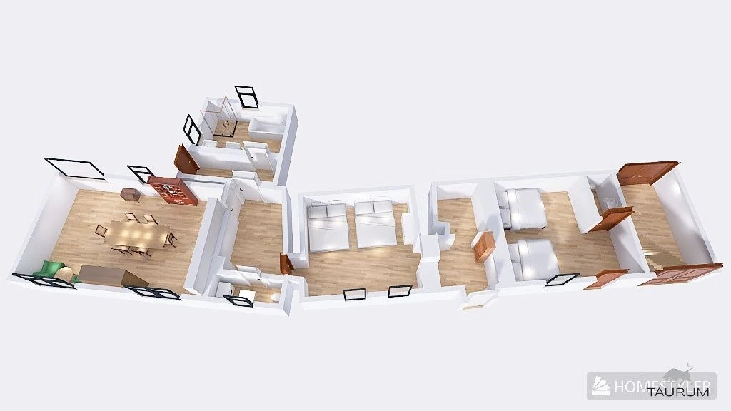 obývací pokoj s velkým oknem, s kuchyní, jídelním prostorem a s prostorem na spaní (37 m2)