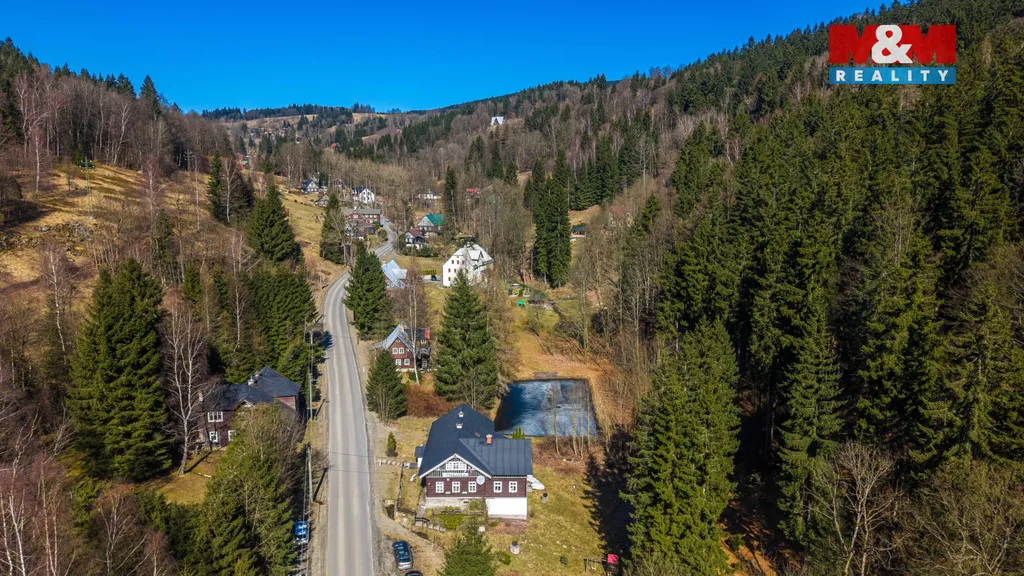 Rodinný dům sloužící jako chalupa jménem Sněhurka, se nachází v Desné u Jablonce nad Nisou a je ideální pro velkou rodinu nebo jako výnosná investice, která má svého správce, celoroční obsazenost hosty, výborné recenze a v současné době výdělečnost na pronájmu 900 tis. Kč ročně. Dům v roce 2024 prošel poslední rekonstrukcí a je celý podsklepený. Interiér nabízí veškeré vybavení k okamžitému provozu, prostorný 55 m² obývací pokoj s krbem, stylovou 22 m² moderní kuchyni, 4 ložnice (15-45m²), 2× WC, 2× koupelna. Kolem pozemku o výměře 1692 m² protéká potůček, který dodává kouzlo v přírodě, avšak přímo za domem najdete také koupaliště pro letní užívání a v zimě možnost bruslení. U domu se dá pohodlně zaparkovat s místem pro 5 aut včetně garáže a zahrada nabízí dětské hřiště s příjemným posezením u lesa. V blízkém okolí, jen 10 min pěšky,se nachází lyžařský vlek Černá Říčka, přehrada Souš a spousta dalších zajímavých míst. Pro více informací si domluvte prohlídku na kterou se budeme těšit
