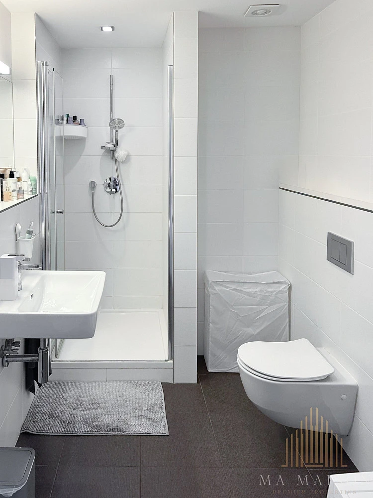 Koupelna disponuje vanou a toaletou, samozřejmostí je přípojka na pračku. K bytu náleží také garážové stání v domě.