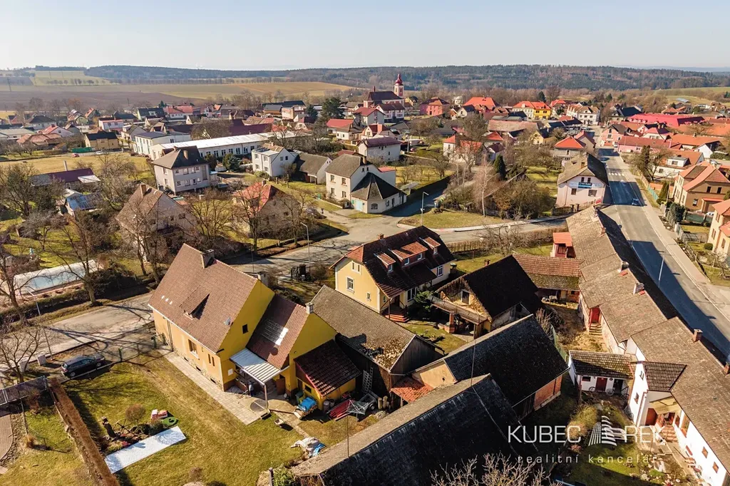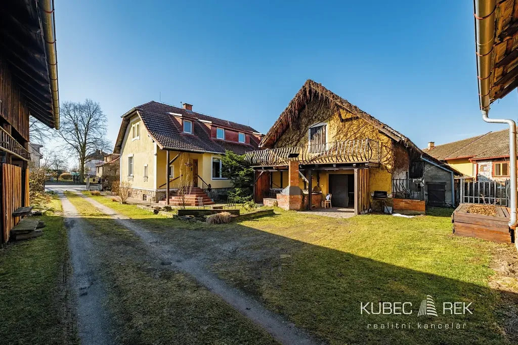 Užitná plocha domu činí přibližně 240 m². Nemovitost stojí na pozemku o celkové výměře 1.143 m², který nabízí dostatek prostoru, soukromí i praktického zázemí. K dispozici je prostorná garáž s dílnou a další parkování na pozemku až pro čtyři vozy. Součástí jsou také dvě stodoly – jedna zděná a druhá dřevěná.