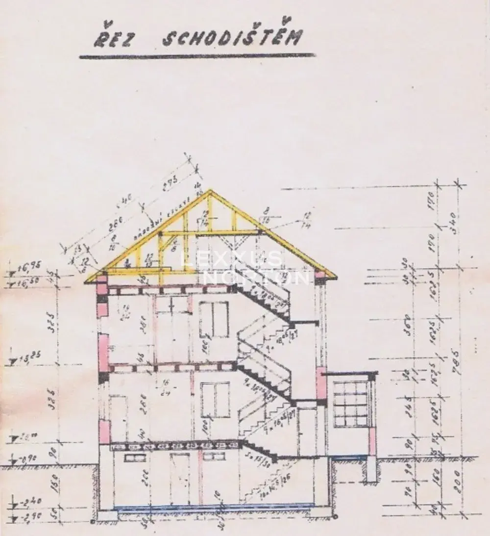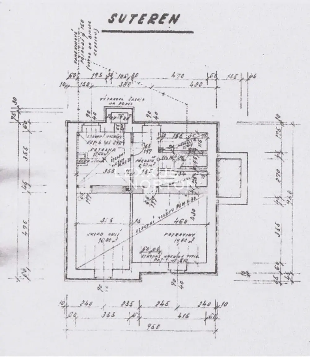 Tento nezařízený dům z 60. let nabízí velkorysý prostor rozložený do několika podlaží. V 1. nadzemním podlaží se nachází vstupní chodba, prostorný obývací pokoj propojený s plně vybaveným kuchyňským koutem a jídelní částí. Dále je zde ložnice, koupelna se sprchovým koutem a toaletou a technická místnost. Ve 2. nadzemním podlaží najdete 3 ložnice, z nichž jedna má přímý vstup na balkon. Dále je zde druhá koupelna s vanou a toaletou a také komora s přípojkou na pračku a sušičku. Nejvyšší patro nabízí půdní prostor vhodný k uskladnění věcí. Suterén disponuje rozsáhlými skladovacími prostory a další technickou místností. K domu náleží také parkovací stání na vlastním pozemku přímo před domem a rozlehlá zahrada, ideální k odpočinku i rodinnému vyžití.