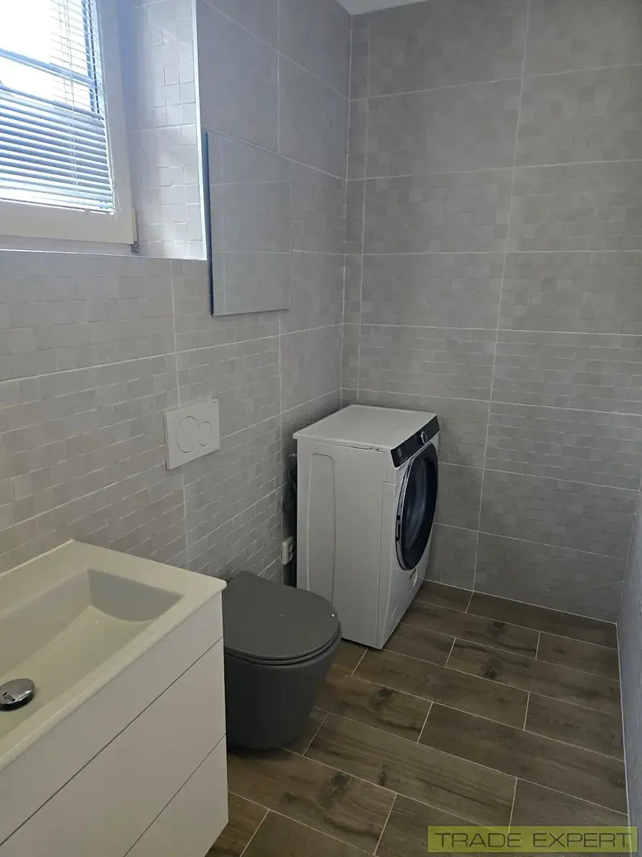 - moderní koupelna s toaletou a pračkou