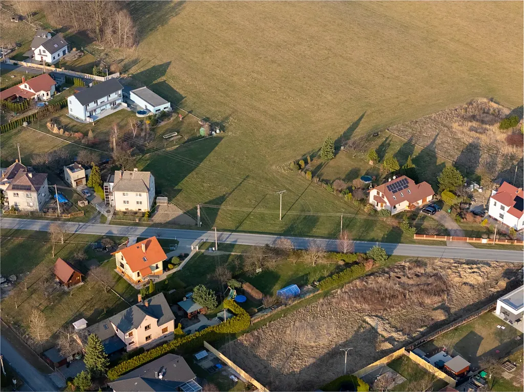 Pozemek se nachází v proluce zastavěného území mezi rodinnými domy, což zajišťuje ideální kombinaci soukromí a již etablovaného rezidenčního prostředí. Lokalita nabízí příjemné bydlení v dosahu přírody s výhledem do okolní krajiny.