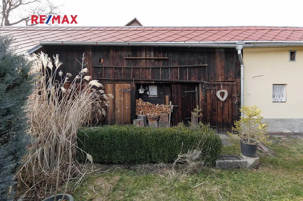Hospodářské zázemí v podobě kůlniček - ve zděné části 3 prostory (zázemí pro udržování zahrady, dílna, sklad zahradního nábytku), v dřevěné části 3 prostory (sklad dřeva, dřevník pro uskladnění věcí a cirkulárka).