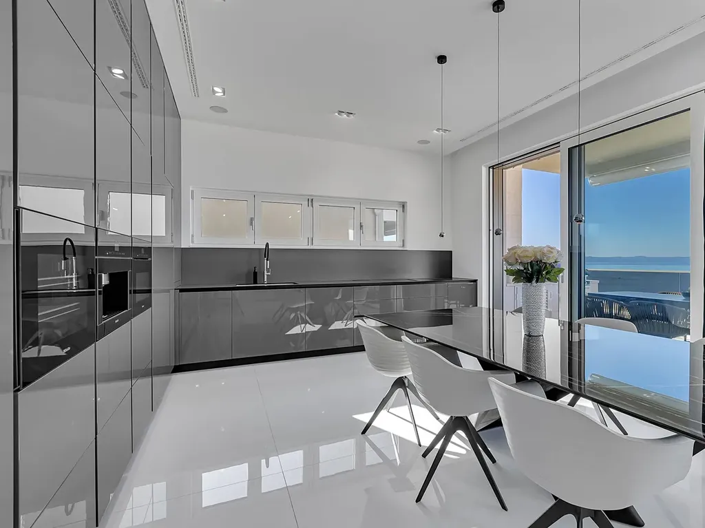 Apartmán sestává z chodby, kde je vestavěná šatní skříň, 2 koupelen, prádelny, 2 ložnic, obývacího pokoje s kuchyní a jídelnou, lodžie a prostorné jižně orientované terasy o ploše 32,52 m2. Apartmán se prodává velmi moderně a vkusně zařízený, čisté linie s bílými akcenty v moderní kuchyni a pokojích dodávají apartmánu otevřený a bezchybný vzhled. Je vybavený klimatizací v každém pokoji, podlahovým vytápěním v koupelnách, má keramické dlaždice, elektrické rolety, bezpečnostní dveře a skleněné zábradlí na terase. Při výstavbě byly použity nejkvalitnější materiály včetně špičkové tepelné a zvukové izolace. V ceně apartmánu jsou 2 garážová parkovací stání v suterénu budovy o celkové ploše 28,73 m2. Vzdálenost od moře je cca 250 m.