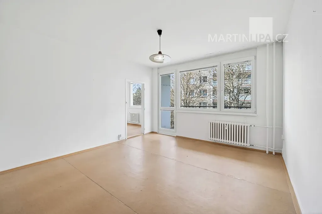 Tady máte příjemně čisté plochy, logické napojení místností a hodně světla. Obývák je největší pokoj s přímým vstupem na lodžii, další dva pokoje se hodí jako ložnice a dětský pokoj/pracovna. Kuchyň je samostatná a je přístupná jak z obýváku, tak i „obíhačkou“ z předsíně. Při rekonstrukci tedy můžete kuchyň ponechat odděleně, nebo ji otevřít a udělat z ní součást moderního obýváku.