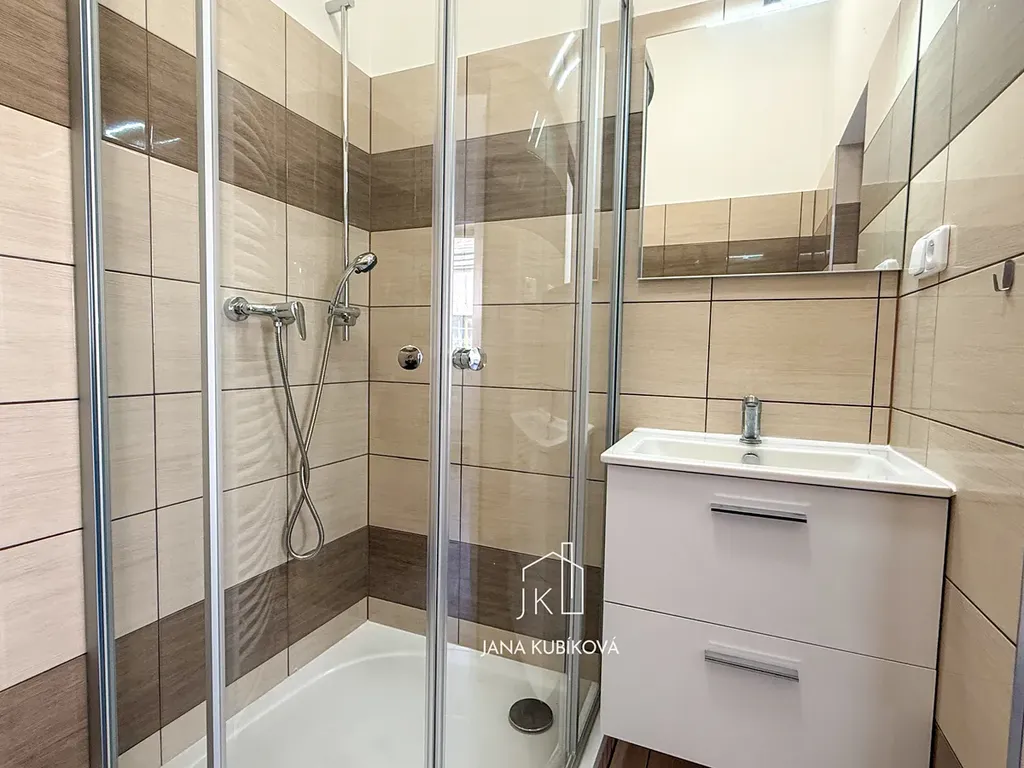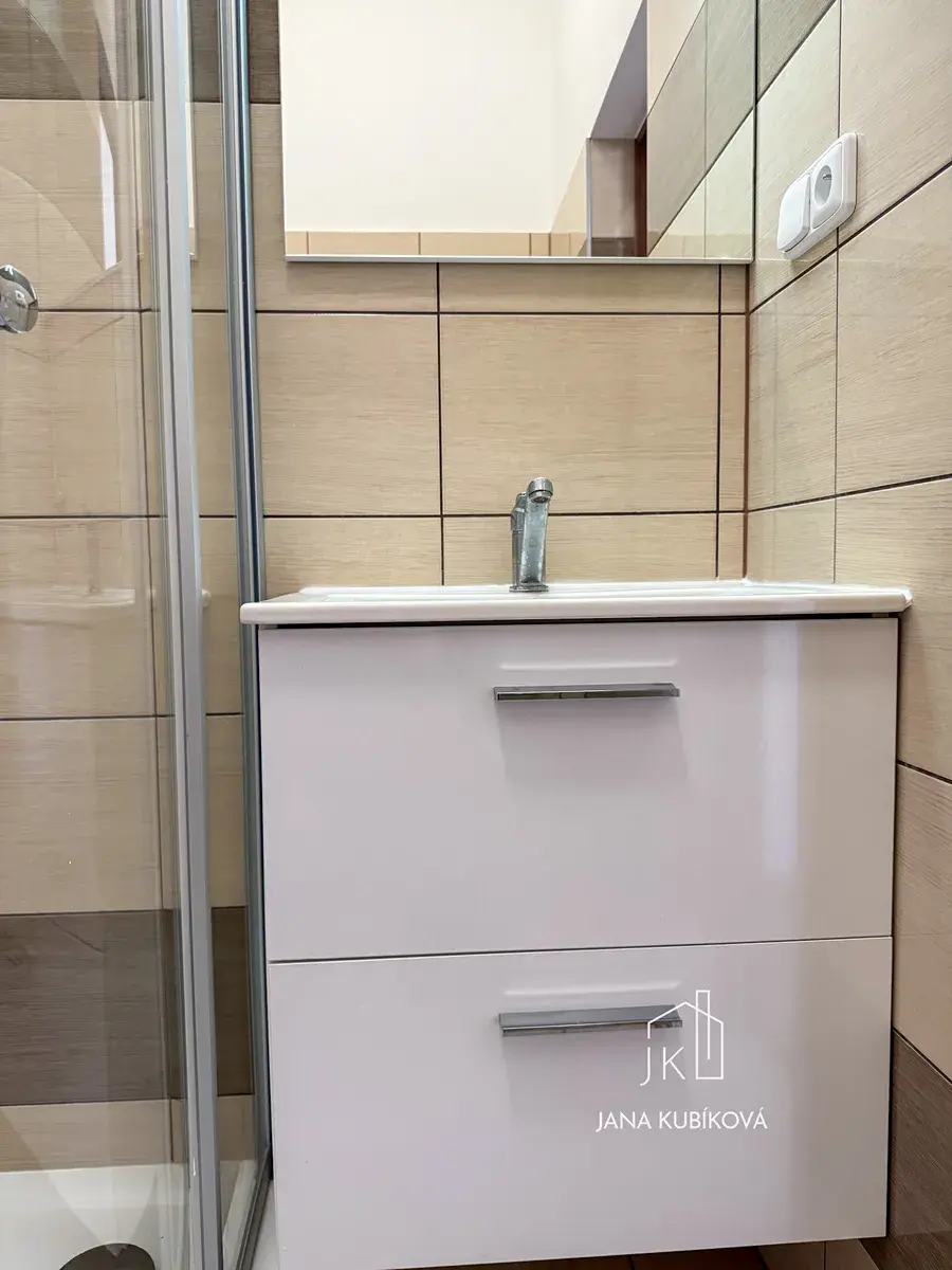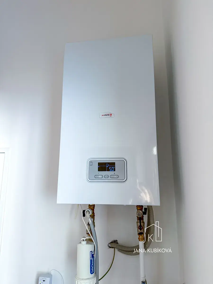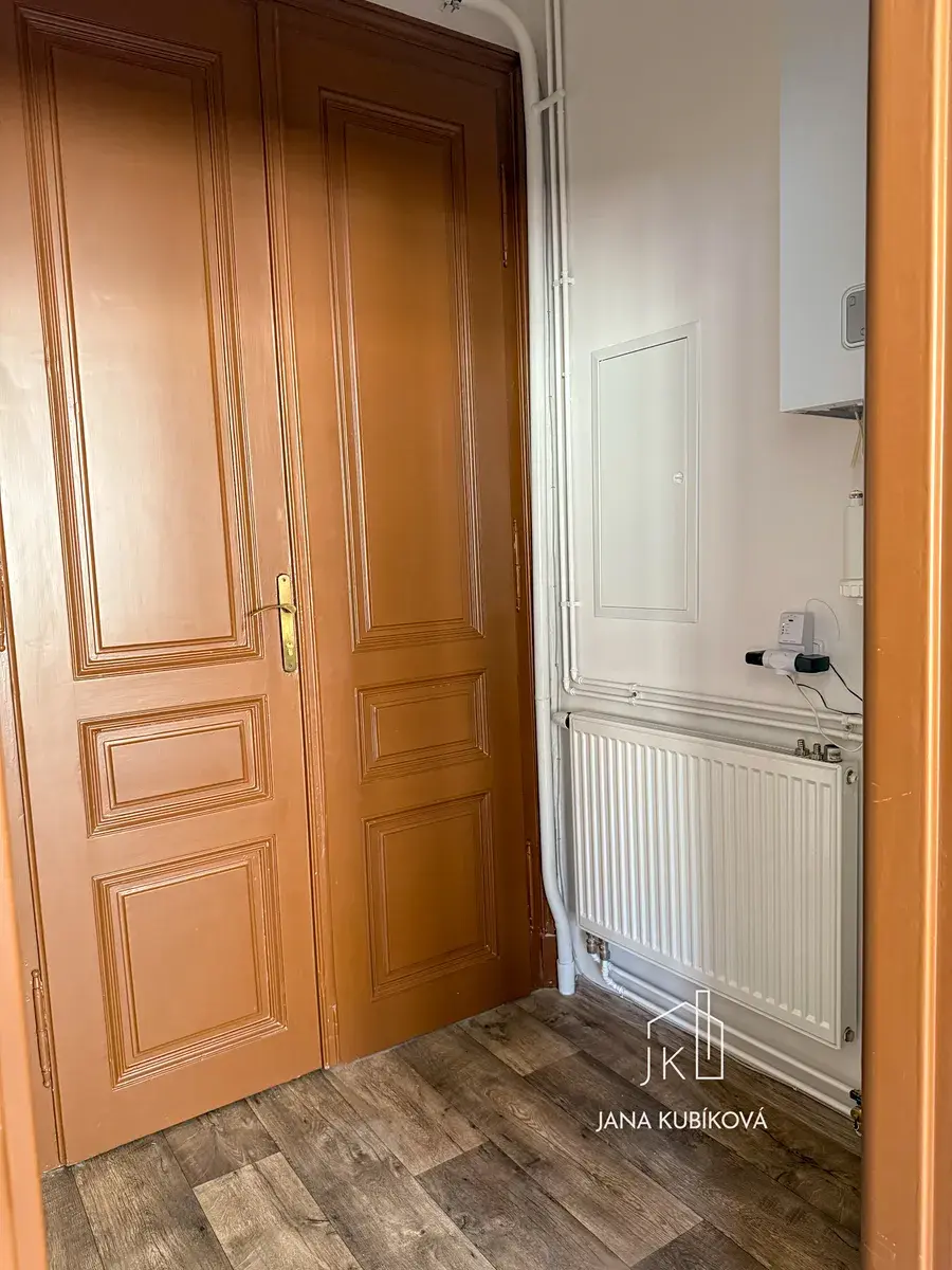 Dispozice bytu je prakticky řešena na samostatnou kuchyni a obytný pokoj. Kuchyňská linka je vybavena elektrickým sporákem a digestoří, což zajišťuje pohodlné každodenní fungování. Vytápění je řešeno samostatným elektrickým kotlem a ohřev vody elektrickým bojlerem, což umožňuje dobrou kontrolu nad spotřebou energií.