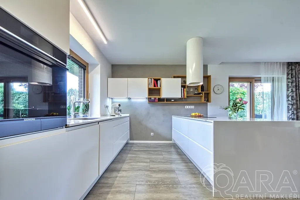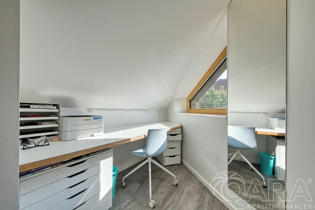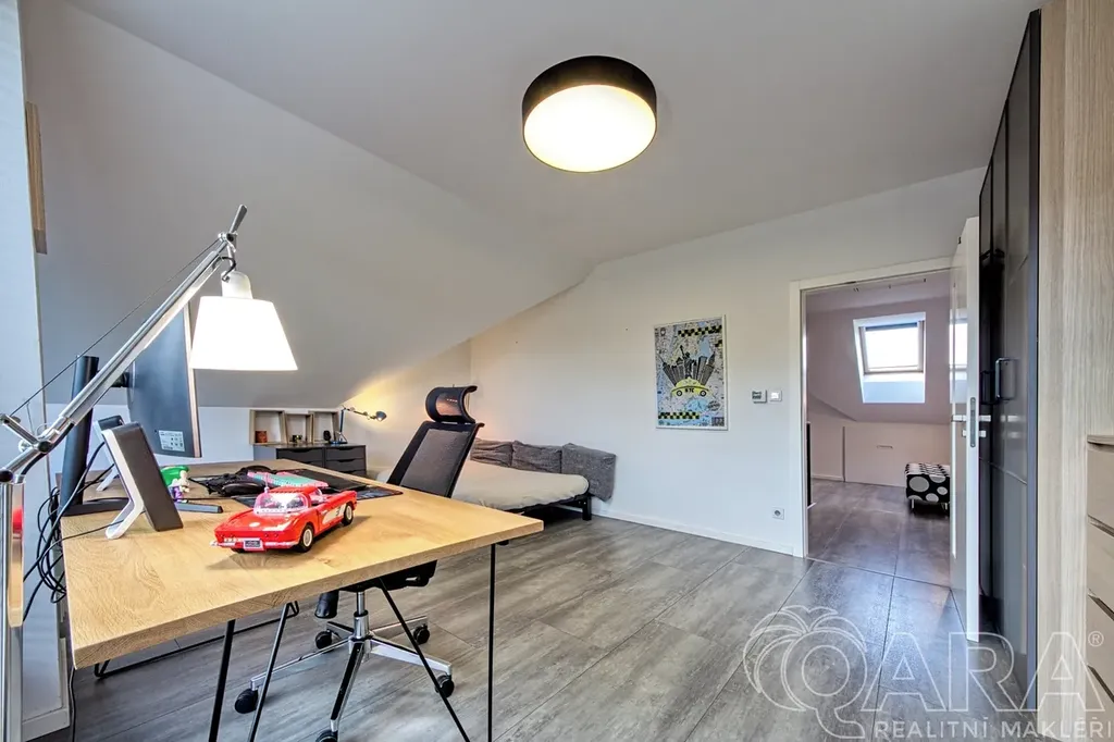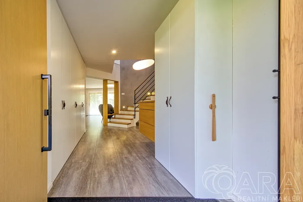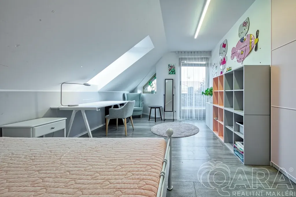 Dispozice domu 6+kk poskytuje dostatek prostoru i pro větší rodinu a zároveň nabízí praktické řešení úložných prostor. Dům byl postaven v roce 2016 s důrazem na kvalitu a využití nadstandardních materiálů. Prodává se částečně zařízený.