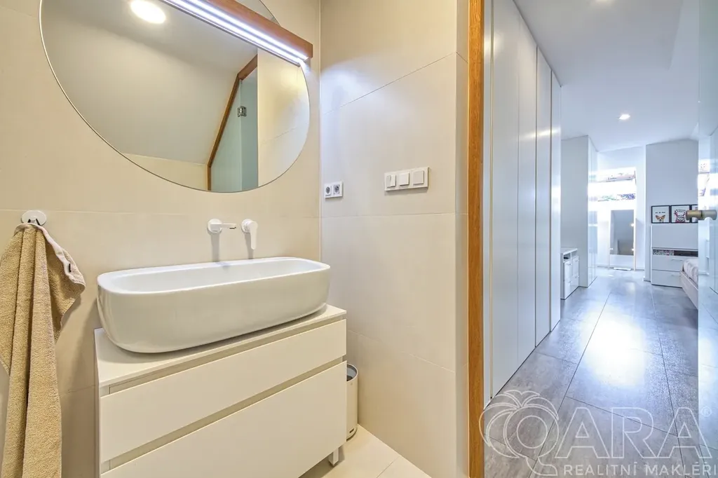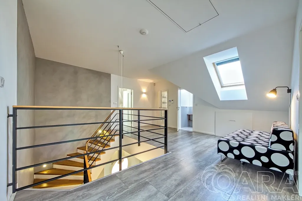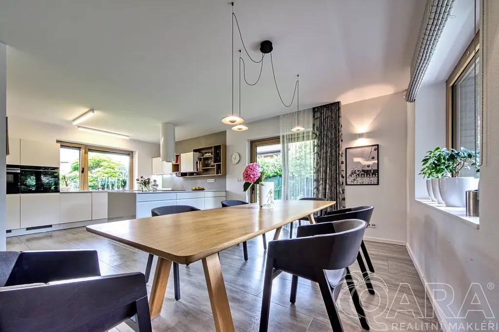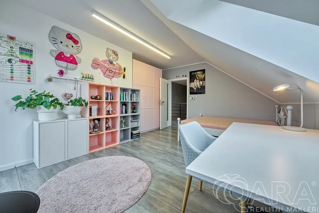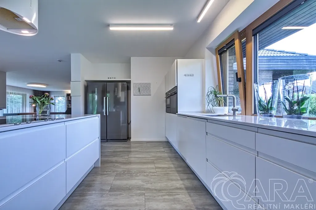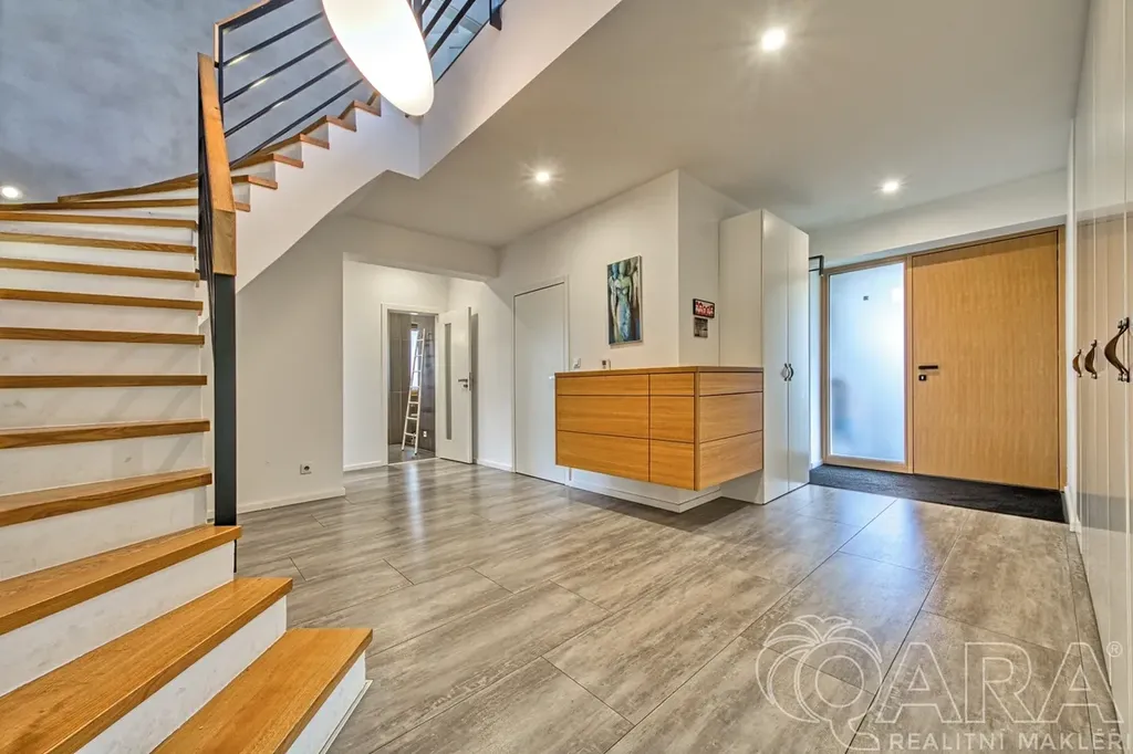 Dispozice domu 6+kk poskytuje dostatek prostoru i pro větší rodinu a zároveň nabízí praktické řešení úložných prostor. Dům byl postaven v roce 2016 s důrazem na kvalitu a využití nadstandardních materiálů. Prodává se částečně zařízený.