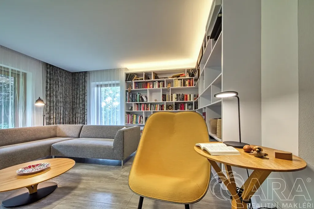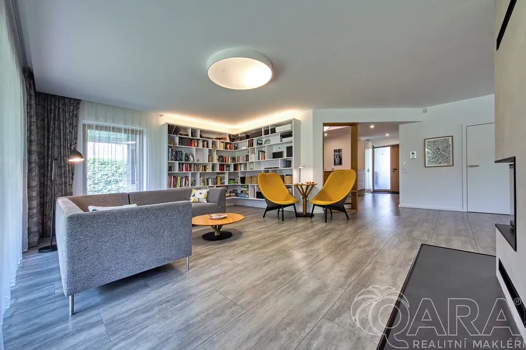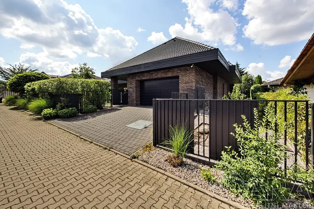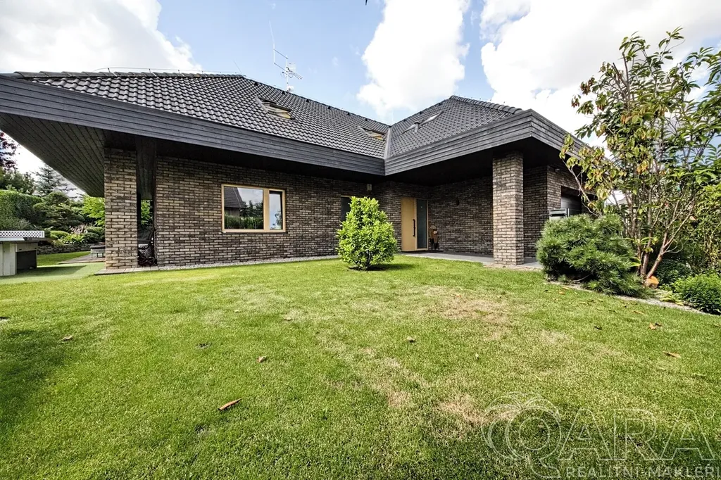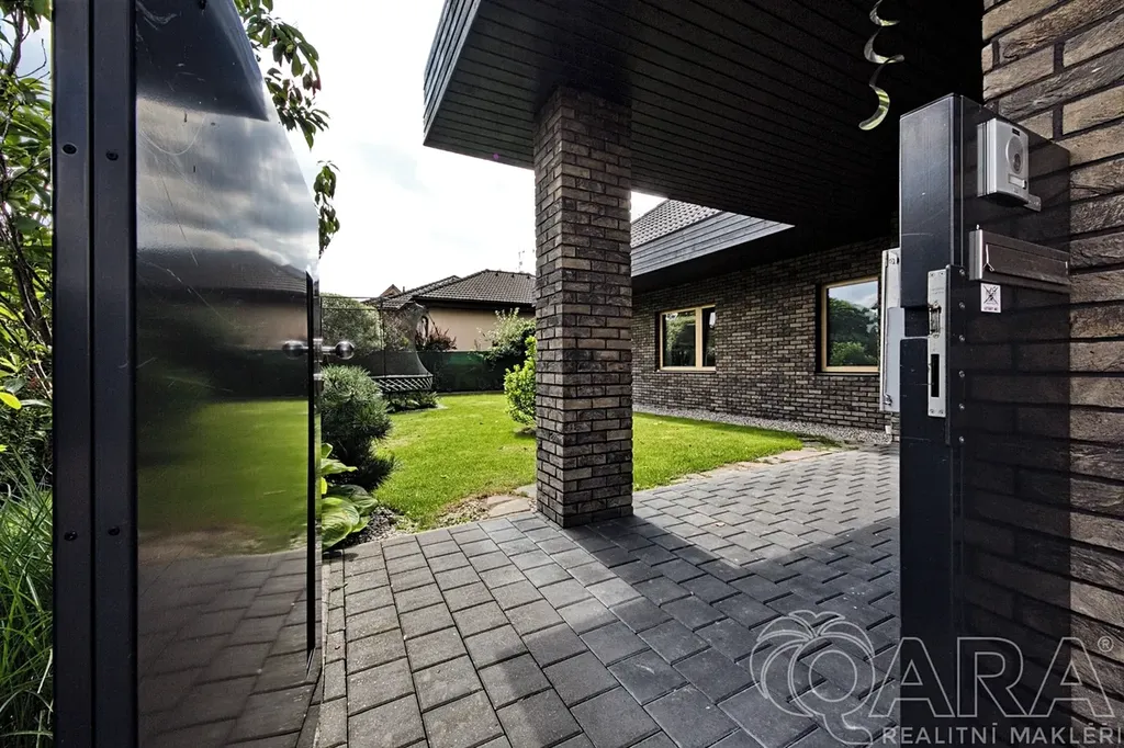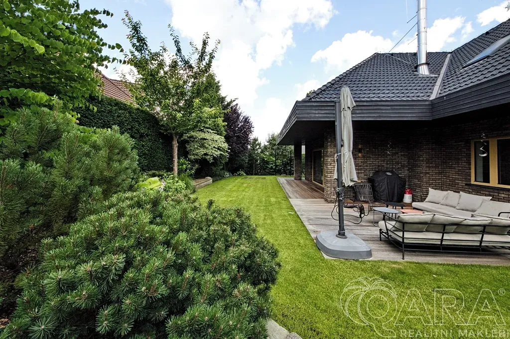 Přesahy střechy přirozeně stíní interiér i exteriér domu a poskytují krytá, intimní místa pro relaxaci, posezení s přáteli nebo grilování. Součástí je krásně upravená, profesionálně založená a již vzrostlá zahrada, která nabízí dostatek prostoru pro odpočinek, hry dětí i rodinná setkání, a zároveň nevyžaduje náročnou údržbu. Co na tomto domě určitě oceníte je velká míra soukromí.