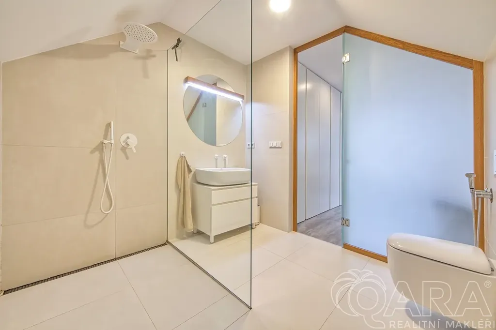 Nabízíme k prodeji prostorný samostatně stojící cihlový dům o užitné ploše 293 m² na pozemku o velikosti 805 m², ideální pro komfortní rodinné bydlení. Nemovitost se nachází v klidné a bezpečné části obce v blízkosti prestižní školy Open Gate.