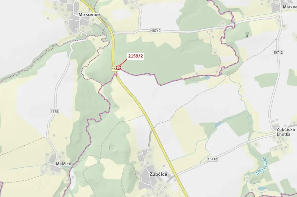Lesní pozemek o výměře 90 m2, parcelní číslo 2159/2, podíl 1/1, katastrální území Žaltice, obec Mirkovice, obec s rozšířenou působností Český Krumlov, okres Český Krumlov, Jihočeský kraj.