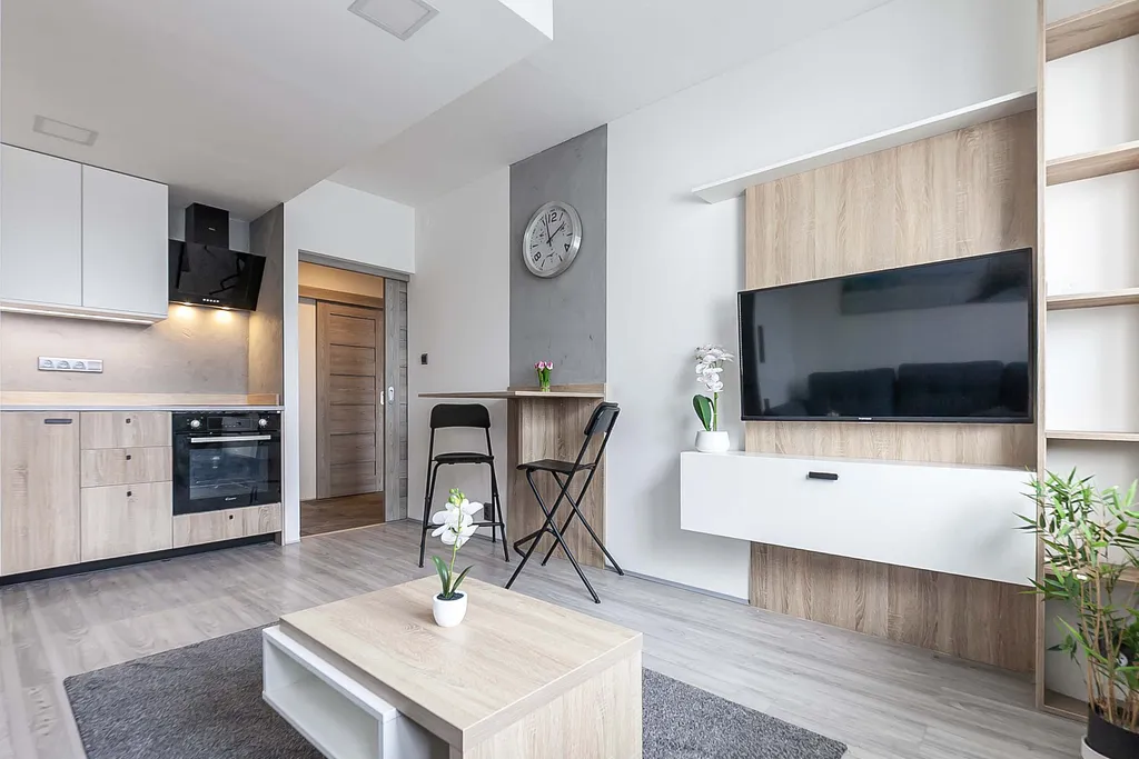 • Kompletní vybavení v ceně: Stačí si přinést osobní věci. V ceně je moderní kuchyňská linka se spotřebiči i veškerý nábytek (viz fotografie).