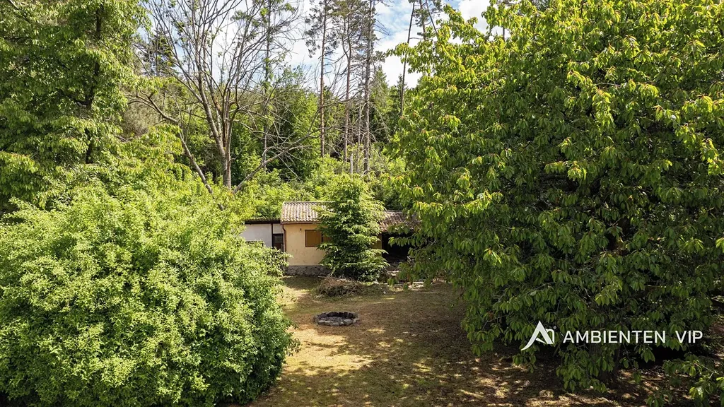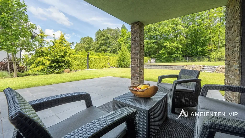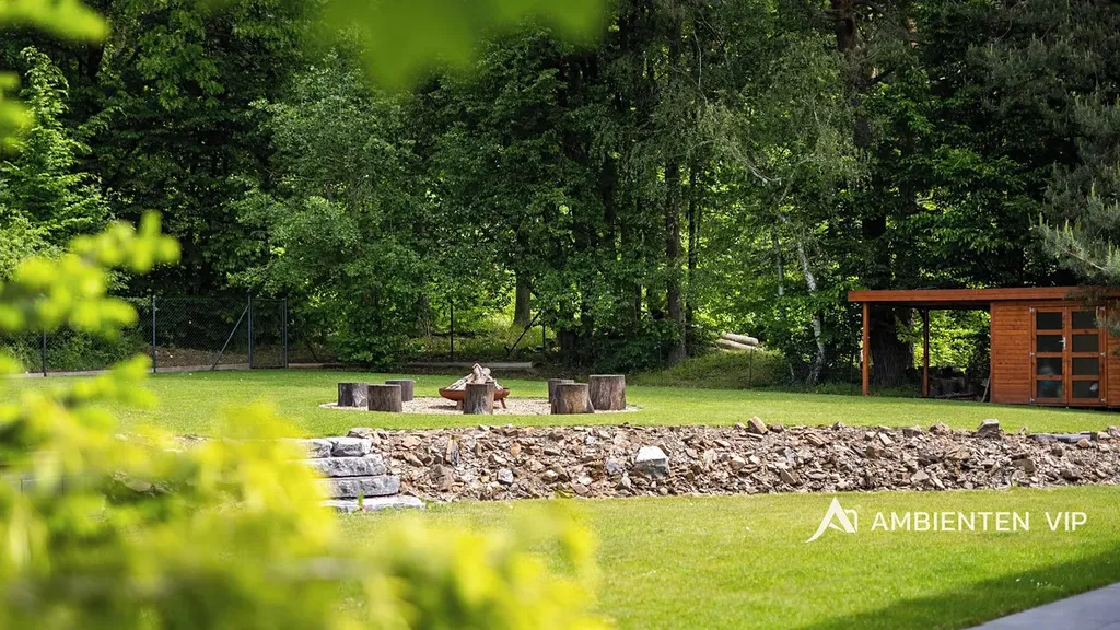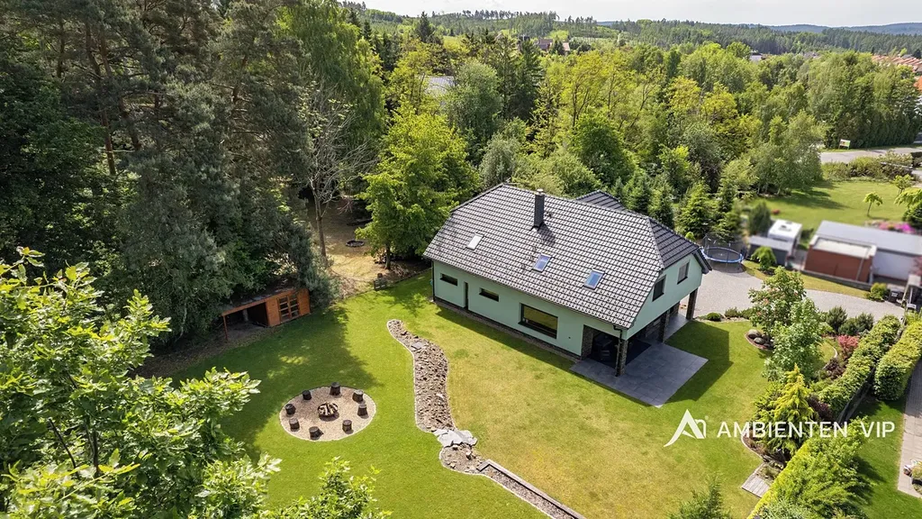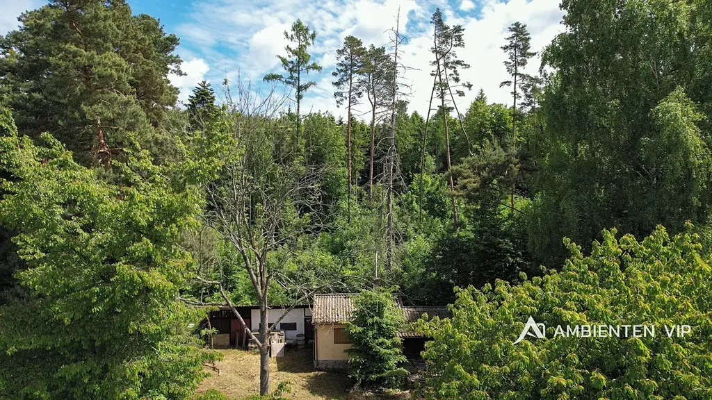Dům se nachází v bezprostřední blízkosti lesa, na konci slepé ulice v nové zástavbě, bez možnosti navazující okolní výstavby. Součástí prodeje nemovitosti je totiž přímo navazující zahrada o výměře 2469m2, na které se nachází i rekreační objekt, určený k rekonstrukci s možností připojení na všechny sítě (zpracována studie na celoročně obyvatelnou chatu). Tímto je zaručeno maximální soukromí, pohoda a klid prodávaného rodinného domu.