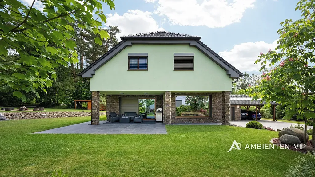 Rodinný dům je určen pro náročného klienta či větší rodinu, která hledá komfortní, prostorné a maximálně klidné bydlení. Vše lze přizpůsobit náročnosti klienta, kdy může jednotlivé místnosti využít pro relax, jako ložnici, dětské pokoje či pro podnikání. Okolí domu, zahrady a vedlejší zahrady s chatou je možné ještě dotvořit dle vkusu, požadavku nebo představ budoucího majitele této krásné nemovitosti.