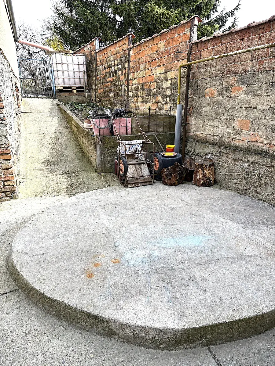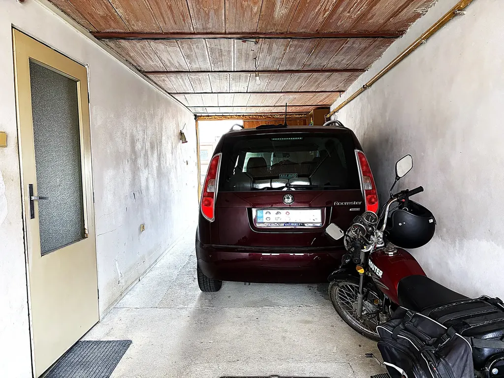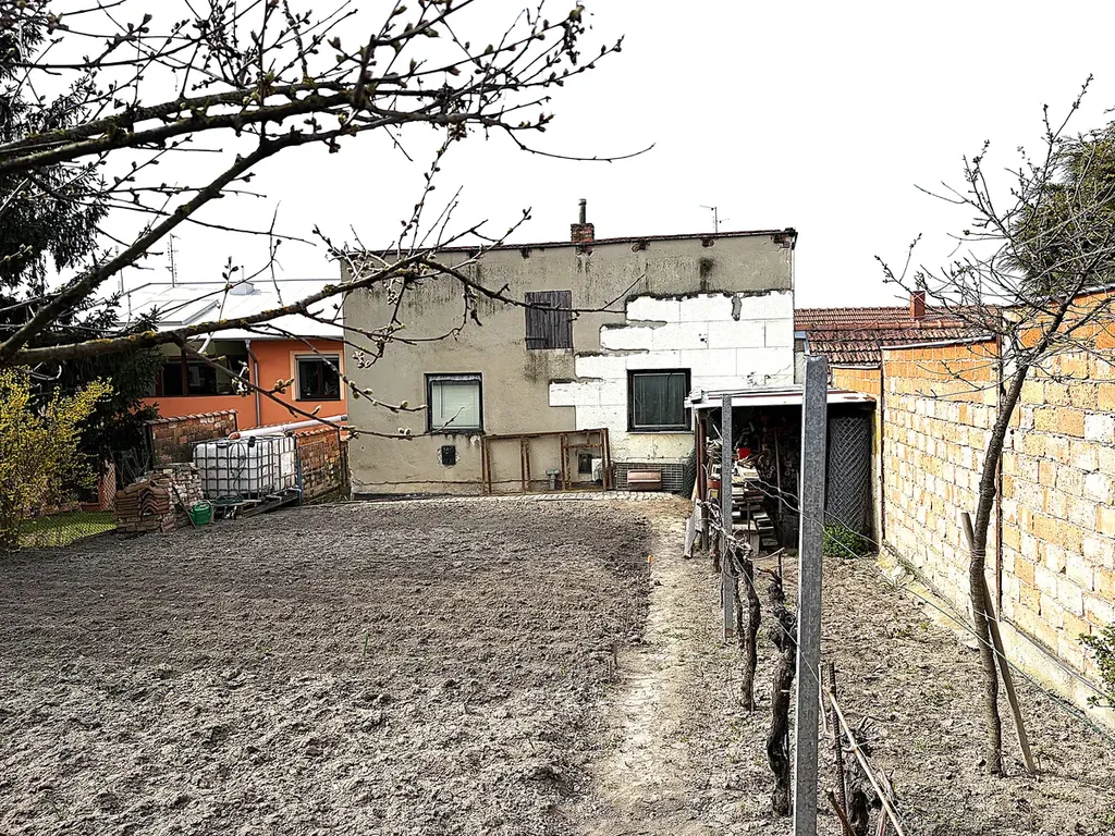 Na pozemku za domem se dále nachází samostatná budova se vstupem přes garáž, ze které lze po rekonstrukci vybudovat další bytovou jednotku o dispozici 2+1 (podlahová plocha 68 m²), vhodnou jako investiční příležitost na dlouhodobý pronájem.