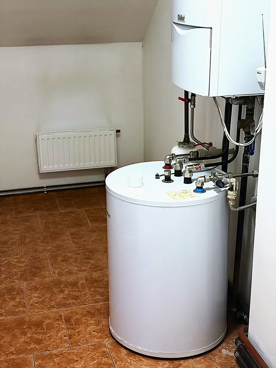 Obě podlaží domu jsou vytápěna plynovým kotlem se zásobníkem na teplou vodu.