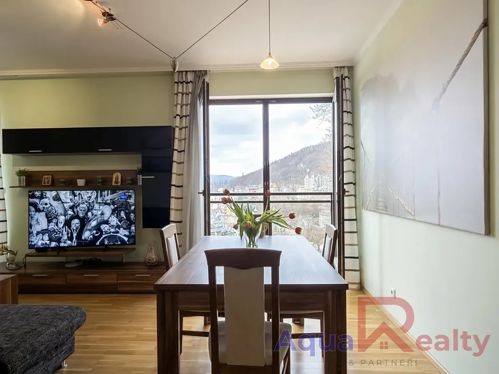 Hledáte klidné bydlení v blízkosti lázeňského centra Karlových Varů? Pak by Vás tento byt mohl opravdu zaujmout. Nabízí totiž krásný výhled na lázeňské centrum i okolní lesy, který vytváří příjemnou atmosféru a pocit klidu. Velká francouzská okna navíc zajišťují dostatek denního světla a ještě více podtrhují jedinečnost tohoto místa.