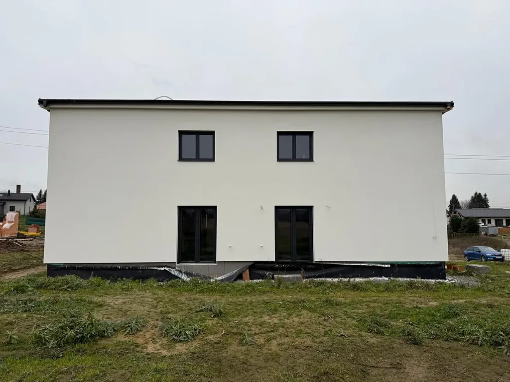 Tepelné čerpadlo, podlahové teplovodní vytápění. Střecha pultová, okna plastová. Vnitřní dveře dle výběru zákazníka, podlahy, obklady, dlažby, sanita(je zahrnuto v celkové ceně) dle výběru zákazníka, elektroinstalace, hromosvod, venkovní vodovodní rohový ventil na zahradě. Přípojky vodovodní, elektro.