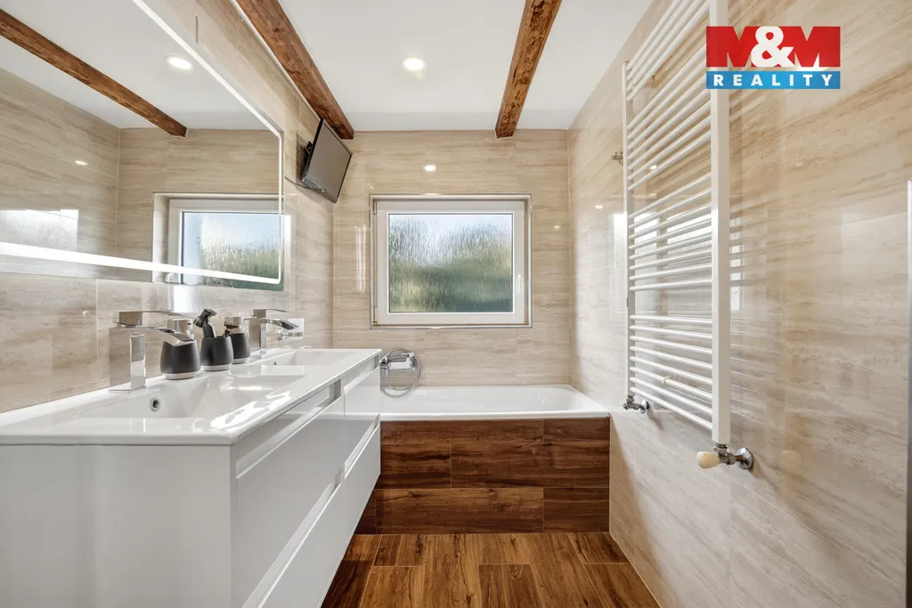 V přízemí se nachází prostorná kuchyň s jídelní částí, světlý obývací pokoj, dvě ložnice, koupelna a přímý vstup do garáže. V patře naleznete další čtyři samostatné ložnice, které poskytují dostatek soukromí pro všechny členy domácnosti.