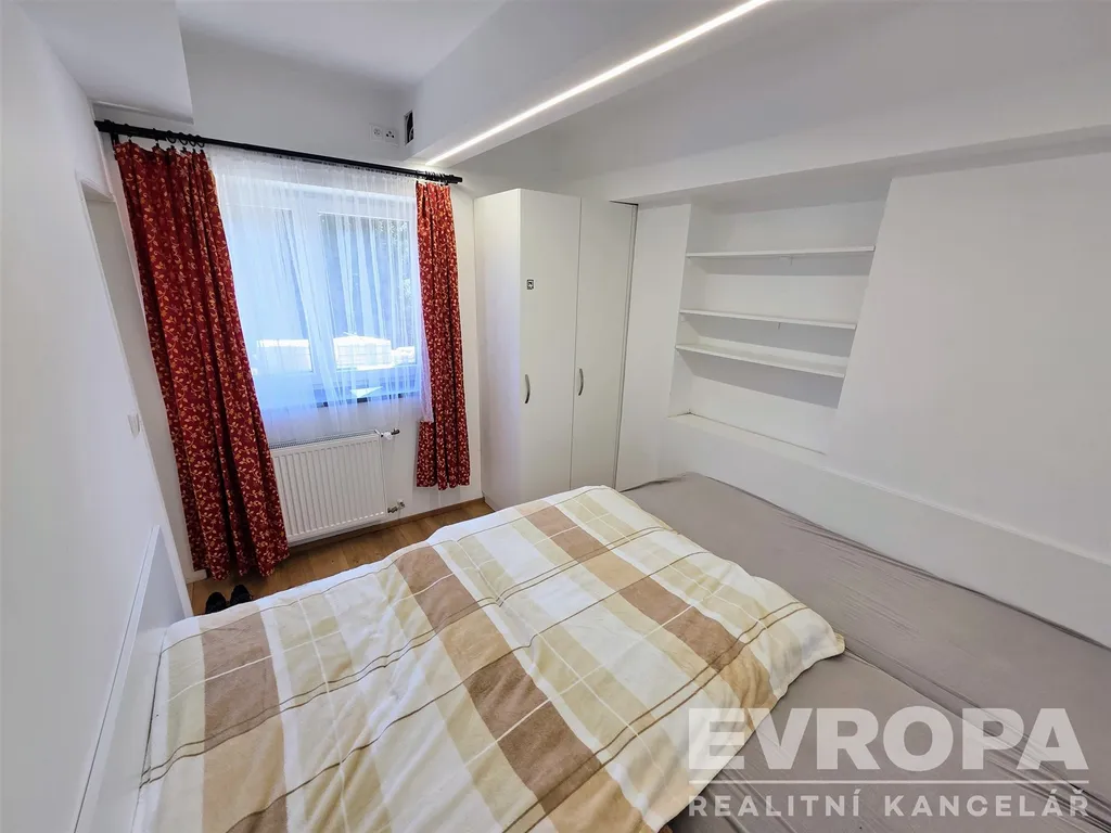 Dispozice bytu zahrnuje vstupní chodbu, koupelnu se sprchovým koutem a WC, obývací pokoj s jídelním a kuchyňským koutem a samostatnou ložnici s vestavěným nábytkem. K bytu náleží sklep a možnost využítí sušárny/kolárny domu, parkování na pozemku přímo před domem.