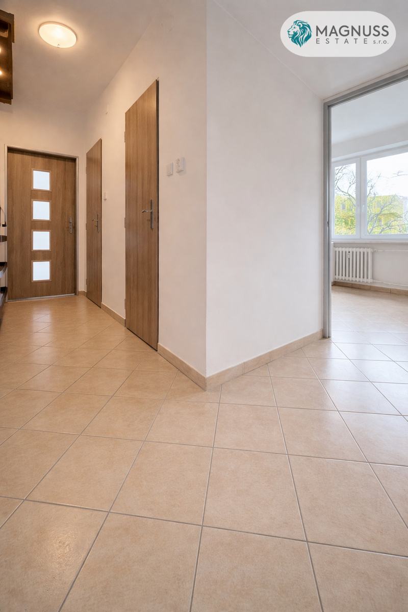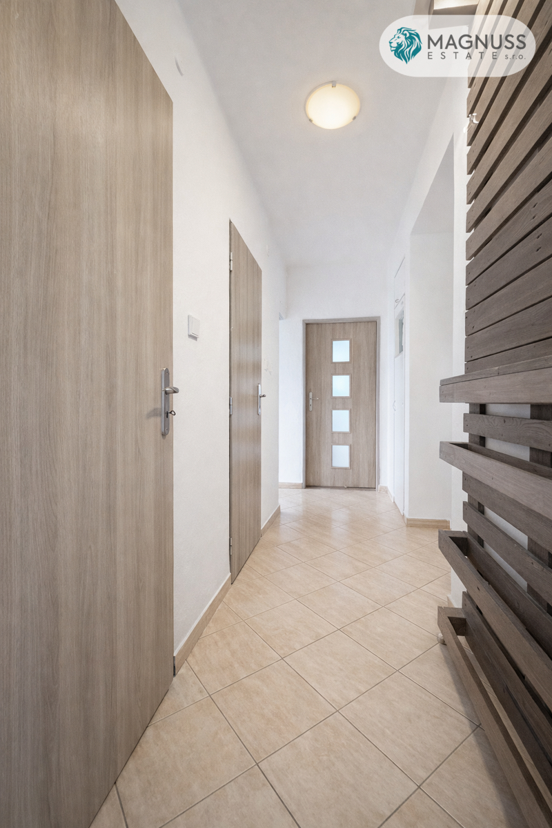 Ve výhradním zastoupení nabízíme k prodeji světlý byt o dispozici 2+1 a podlahové ploše cca 62 m², který se nachází v klidné a vyhledávané lokalitě Krásno nad Bečvou ve Valašském Meziříčí. Velkou výhodou je vlastní zděná garáž přímo v domě, která je již zahrnuta v ceně, neprůchozí pokoje a komora v bytě.