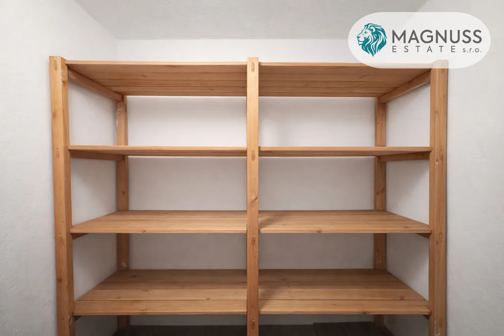 Kuchyně je samostatná a nabízí dostatek prostoru pro realizaci dle vlastních představ. Dále je k dispozici koupelna s vanou, samostatné WC a praktické úložné prostory.