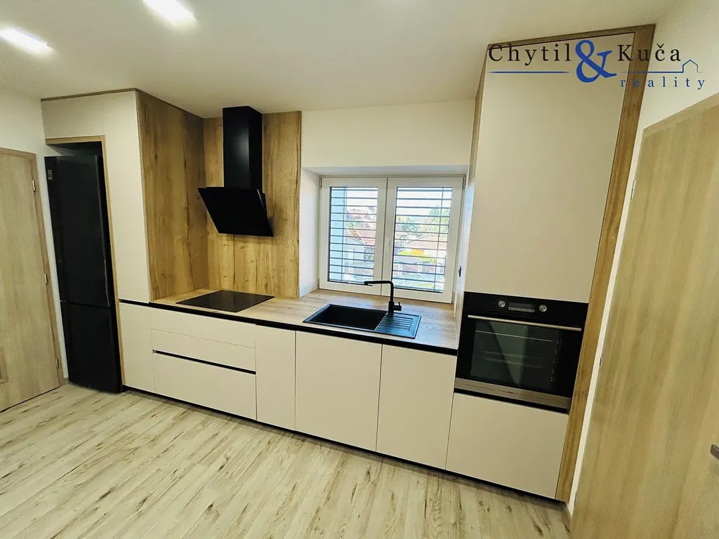 Byt je dispozičně řešený jako 2+kk (chodba, koupelna s wc a sprchovým koutem, 2 místnosti vč. kuchyňské linky) a je nový po kompletní rekonstrukci, stejně jako celý dům.