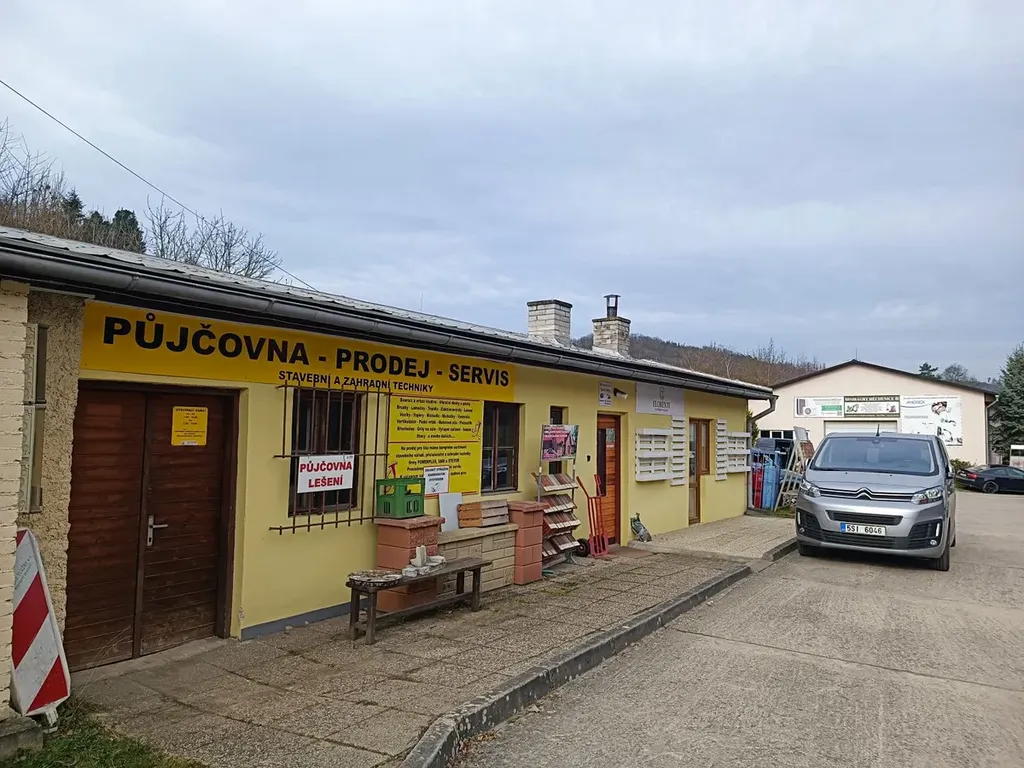 Nemovitost sestává z budovy A - skladová hala (300 m2), dosud fungující jako prodejna - stavebniny a manipulační prostor před halou (300 m2), měsíční pronájem 50.000,- Kč a z budovy B - samostatná budova stávající se z kanceláře, skladu a sociálního zařízení (72 m2), měsíční pronájem 10.000,- Kč.
