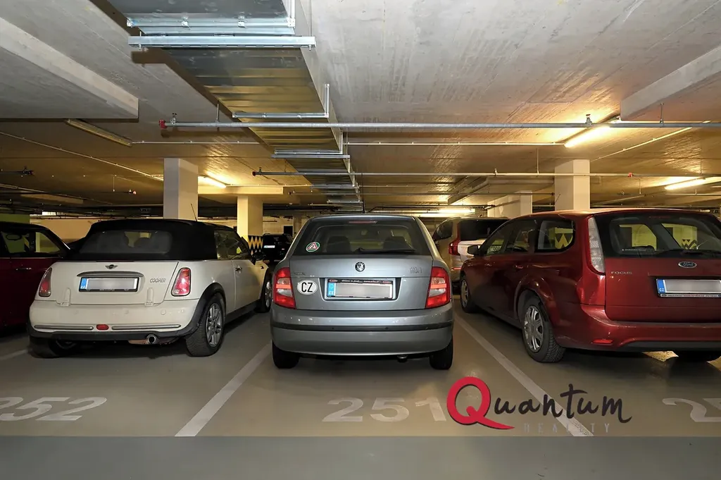 K bytu je možnost pronájmu parkovacího stání v garážích domu za 2.000 Kč.
