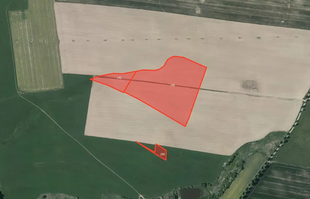 parc. č. 145 – druh pozemku: orná půda, výměra 45 825 m²