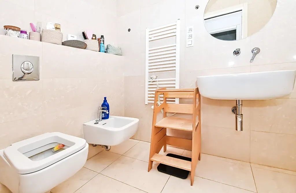Byt je vybaven moderní kuchyňskou linkou se všemi vestavěnými spotřebiči a prodává se kompletně zařízený, což umožňuje okamžité nastěhování nebo využití jako investiční nemovitost k pronájmu.