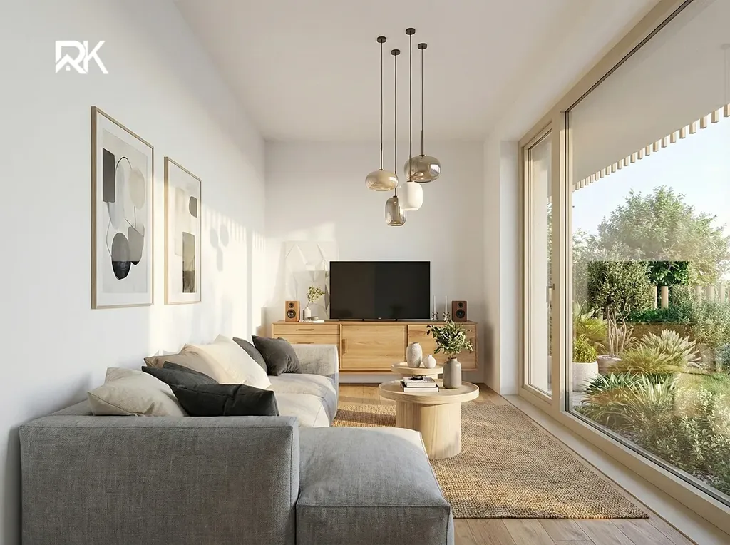 Byt se nachází v přízemí a má užitnou plochu 71 m². Obytný prostor (cca55m2) navazuje na terasu (cca 17m2) a zahradu o výměře 54 m², ideální pro relaxaci i odpočinek. Součástí bytu je také praktická šatna.