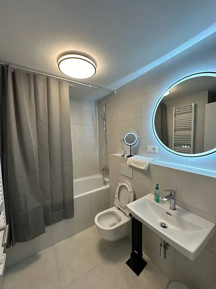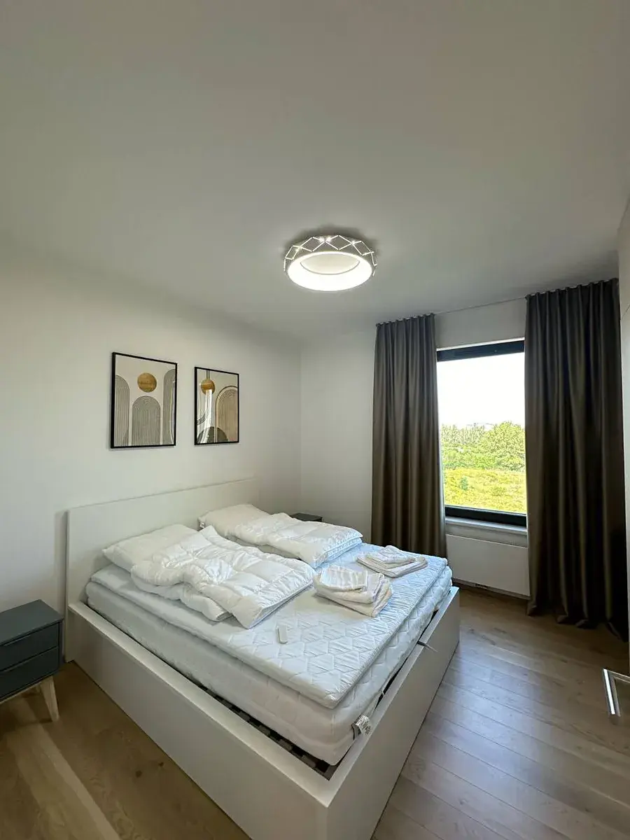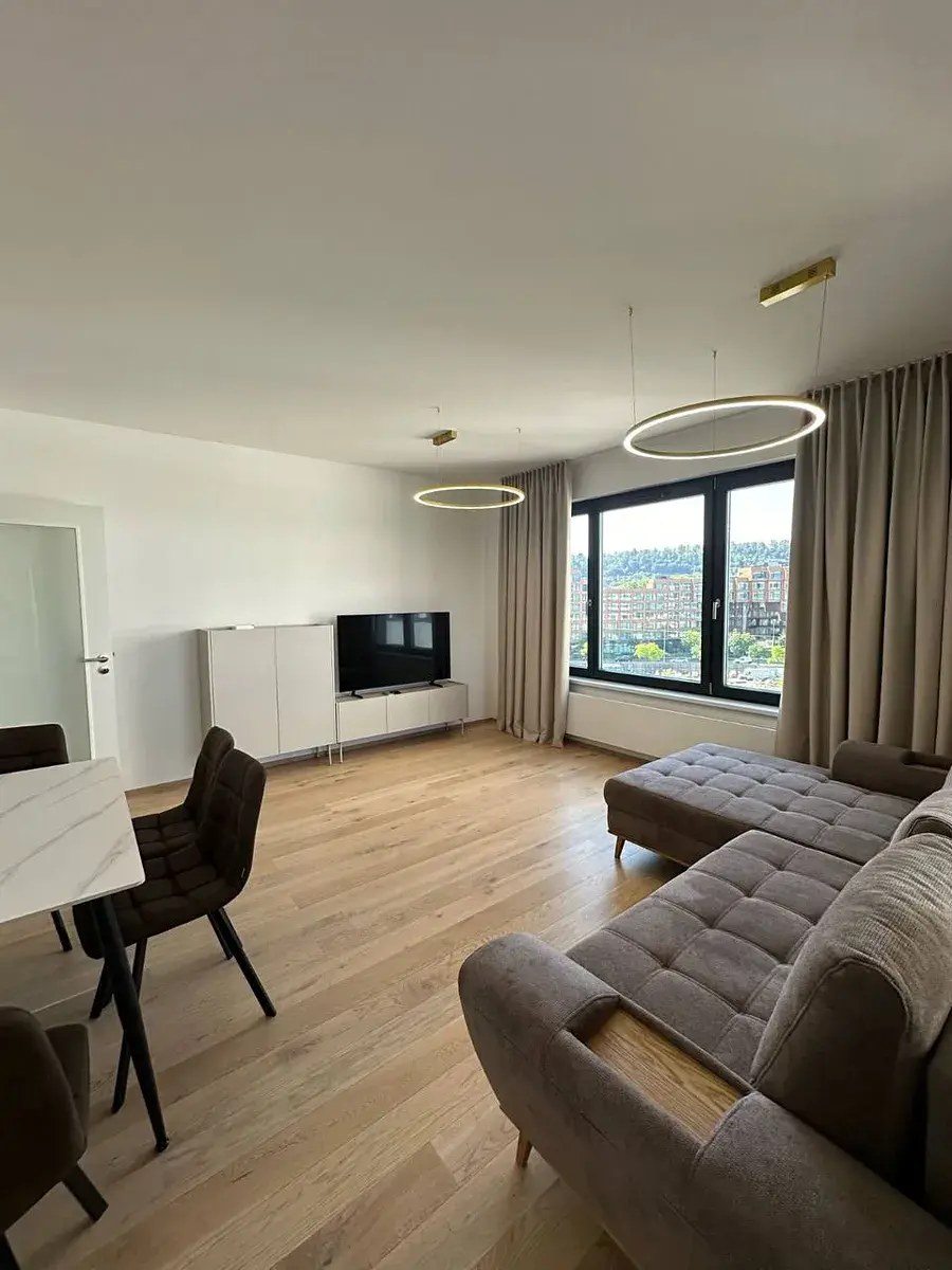 Byt se skládá z prostorného obývacího pokoje spojeného s kuchyní, samostatné ložnice, chodby a koupelny s toaletou. Byt je zařízen a vybaven novým nábytkem.