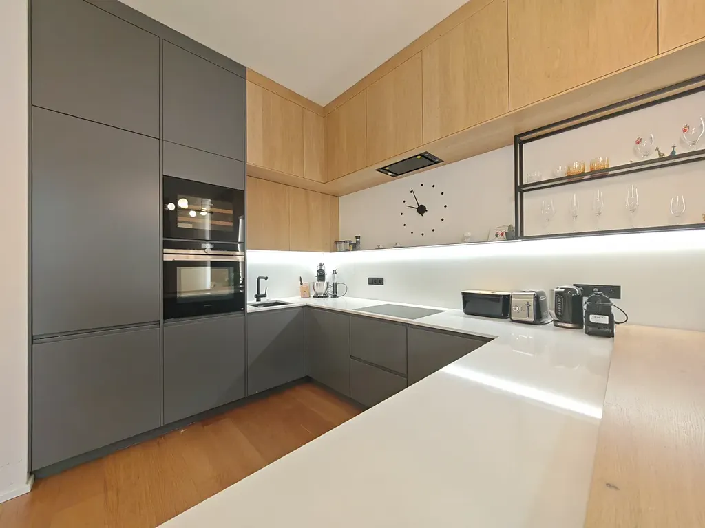 Byt také nabízí moderní smart-home prvky, včetně centrálního LCD panelu pro ovládání domácnosti, klimatizace, rekuperace vzduchu a kamerového zabezpečovacího systému přímo napojeného na recepci.