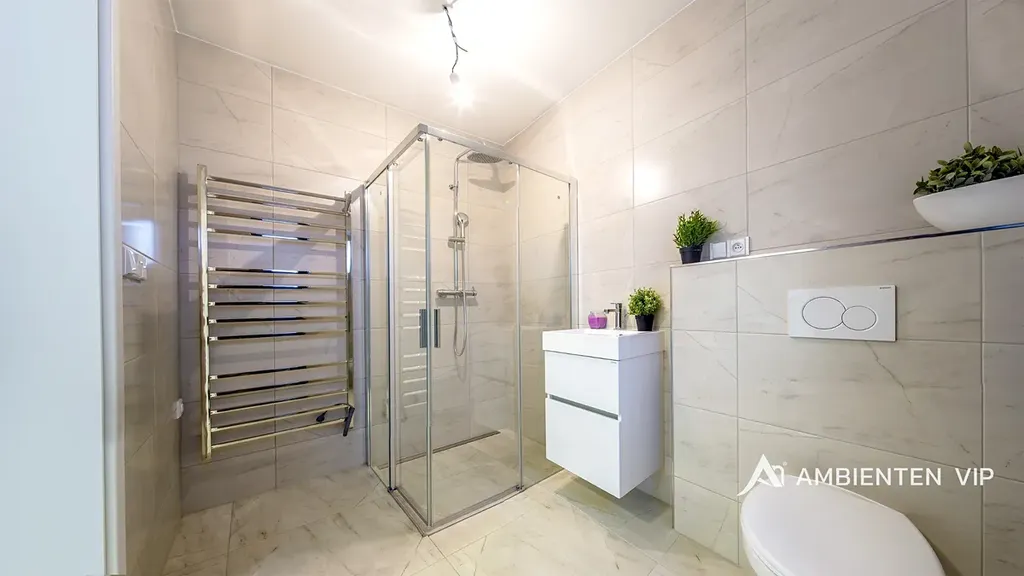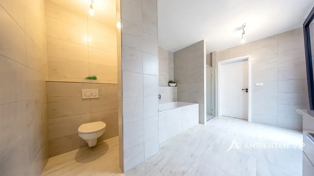 Celkem se v domě nachází tři obytné ložnice o velikostech 13,27 m2, 14,56 m2 a 18,66 m2. Druhá luxusní koupelna je přístupná ze dvou ložnice a disponuje WC, umyvadlem, sprchovým koutem a vanou.