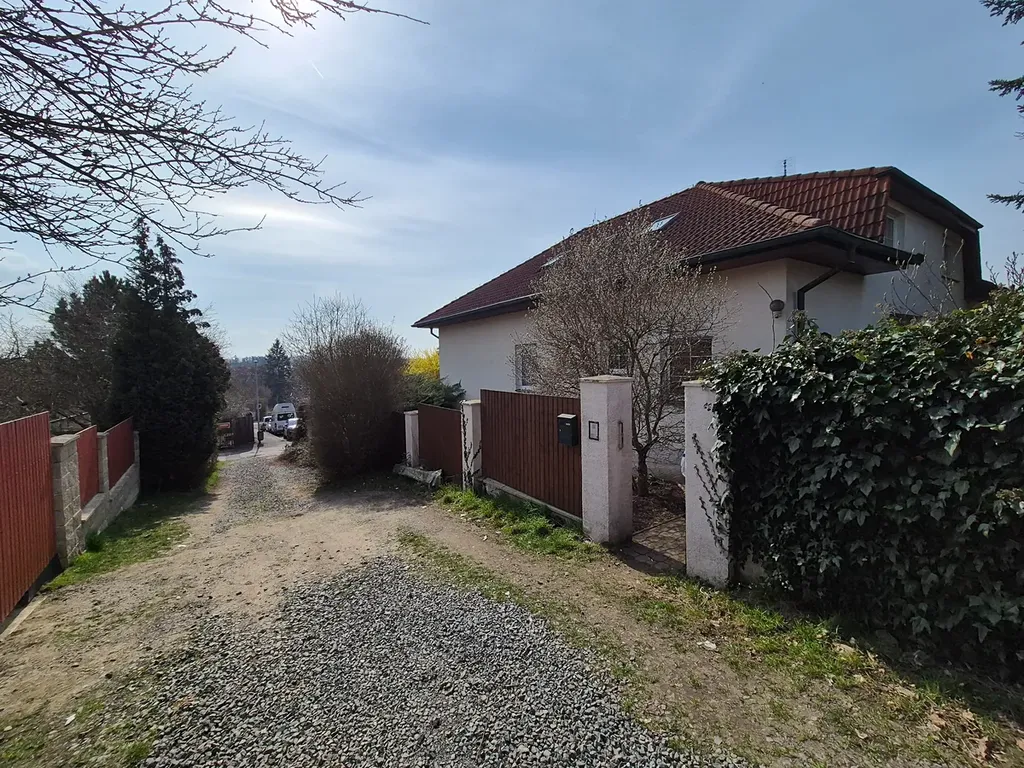 Dům 6+1 se zimní zahradou, velkou garáží, saunou a odpočinkovou místností stojí v tiché části Prahy 4 – Točné, v lokalitě, která si zachovala vesnický charakter, a přitom nabízí pohodlné spojení s městem. V roce 2029 má být v blízkosti otevřena stanice metra Písnice (cca 8 min. MHD).
